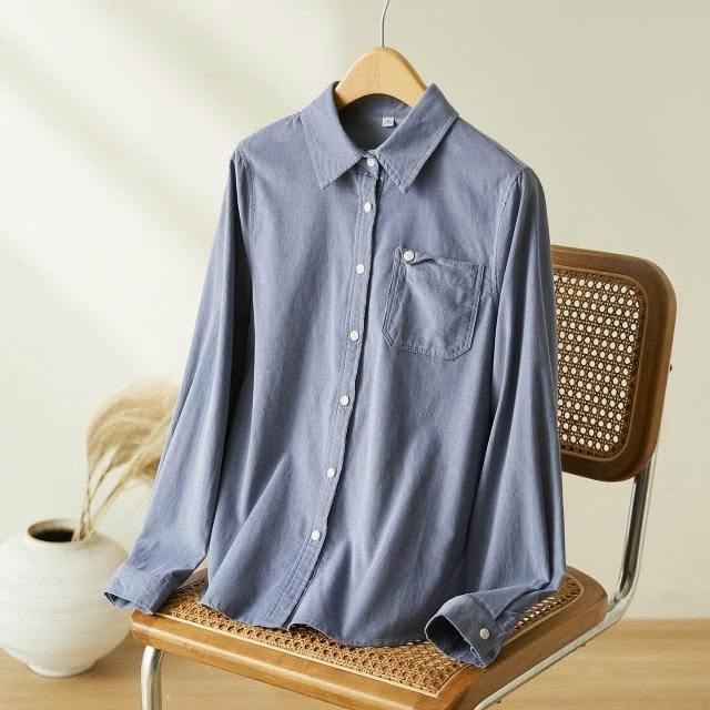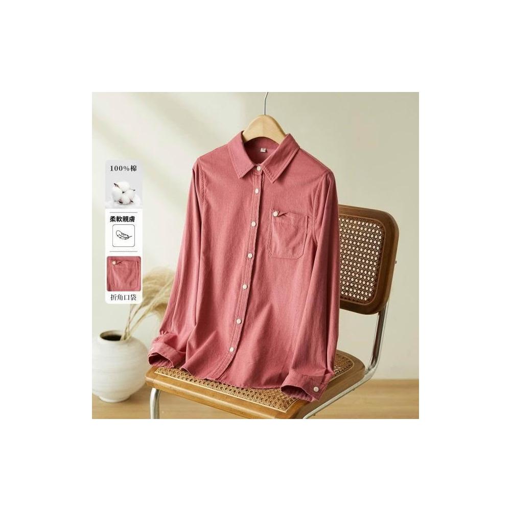新品 含發票 玫紅色磨毛襯衫女長袖2026春裝新款上衣設計感翻領休閑純棉襯衣
