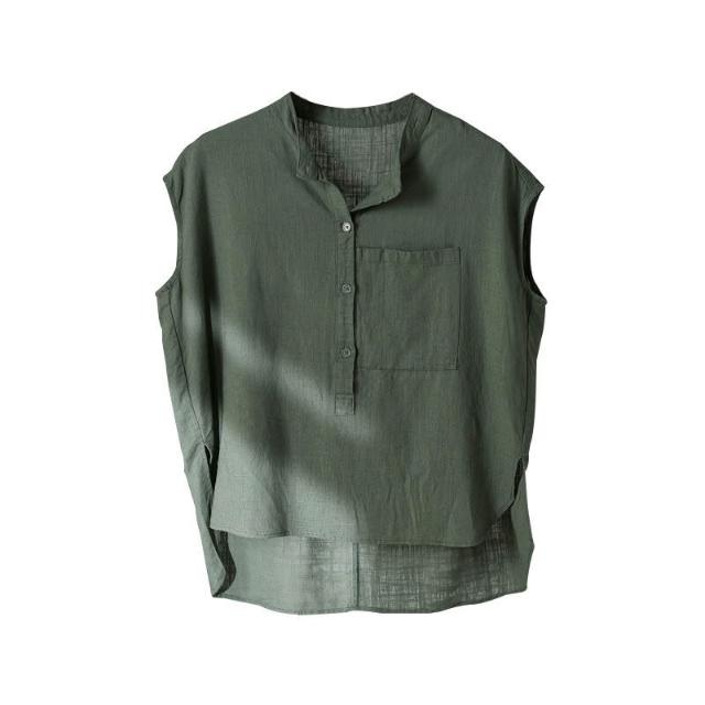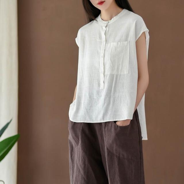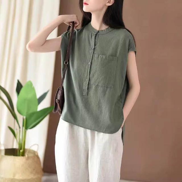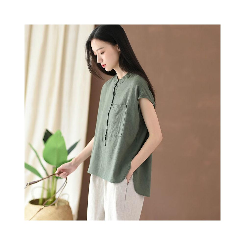新品 含發票 2026夏季棉麻女裝新款文藝寬松立領亞麻上衣女式短袖襯衫T恤