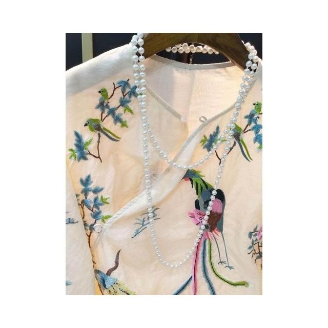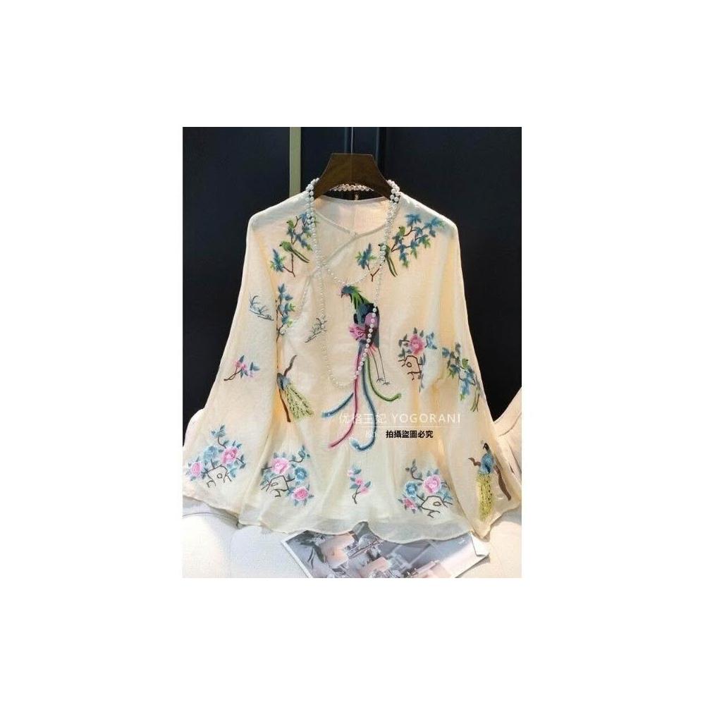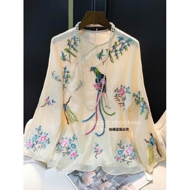 新品 含發票 復古新中式圓領繡花襯衫女2023年夏季新款國風休閑百搭上衣潮長袖