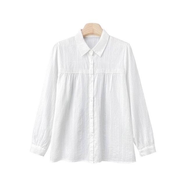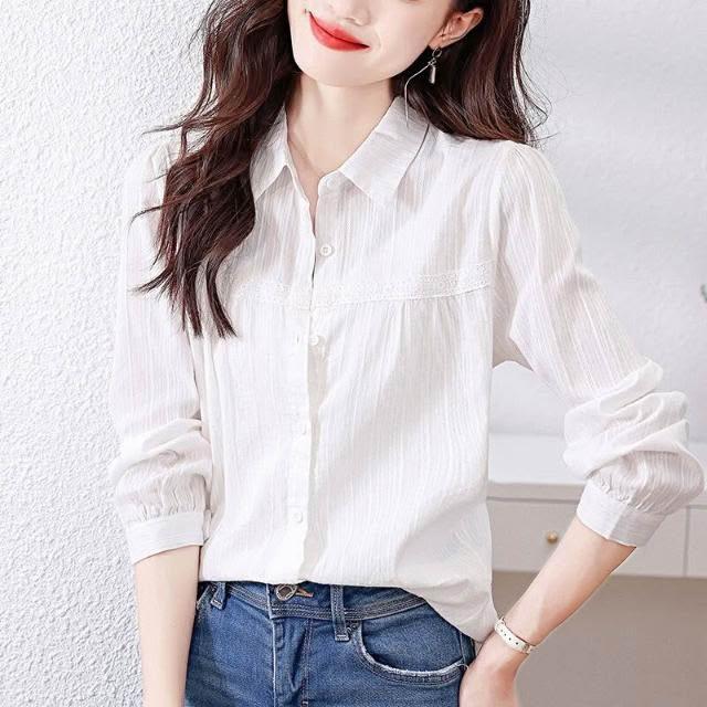 新品 含發票 蕾絲花邊拼接白襯衫女長袖2026春秋新款襯衣通勤氣質上衣蕾絲拼接