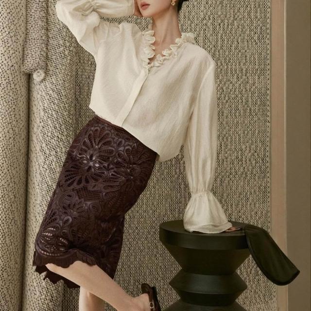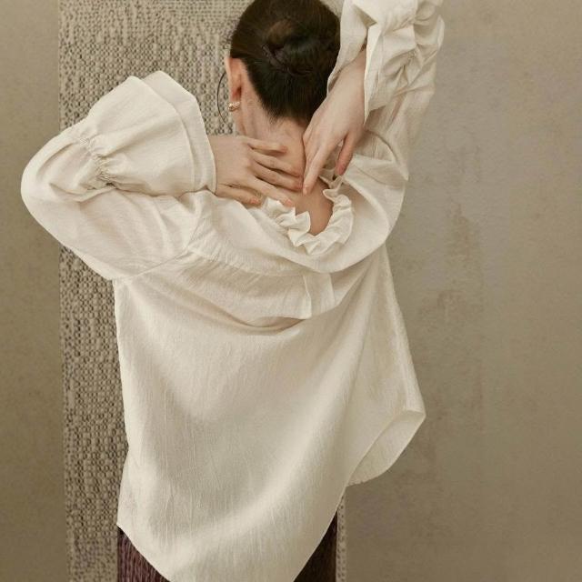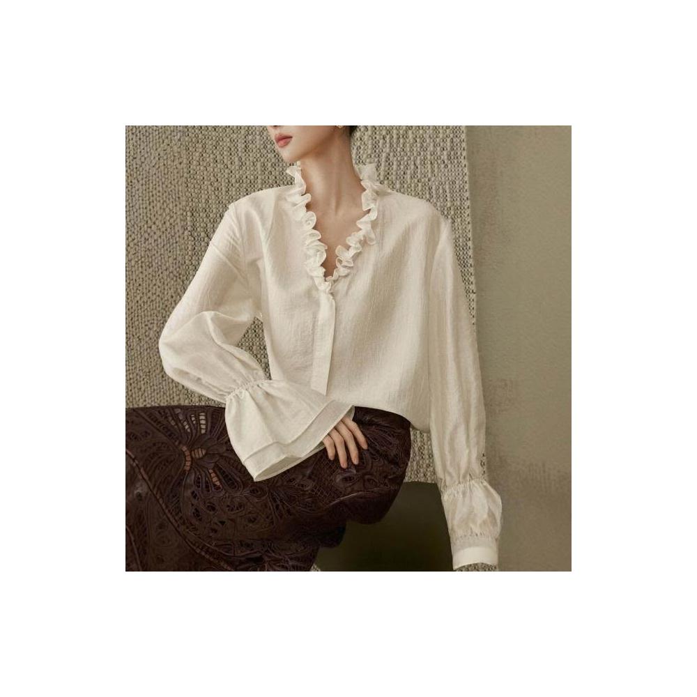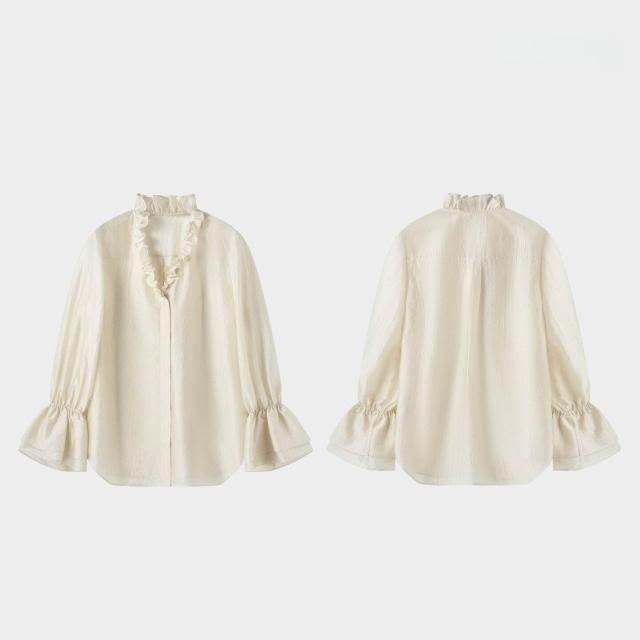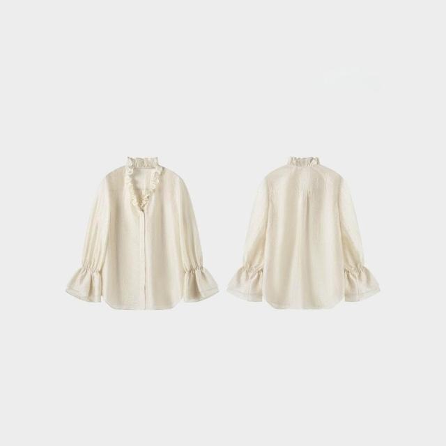 新品 含發票 2026年春夏新款浪漫法風光澤感雲光緞木耳邊雞心領輕薄微透襯衫