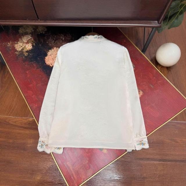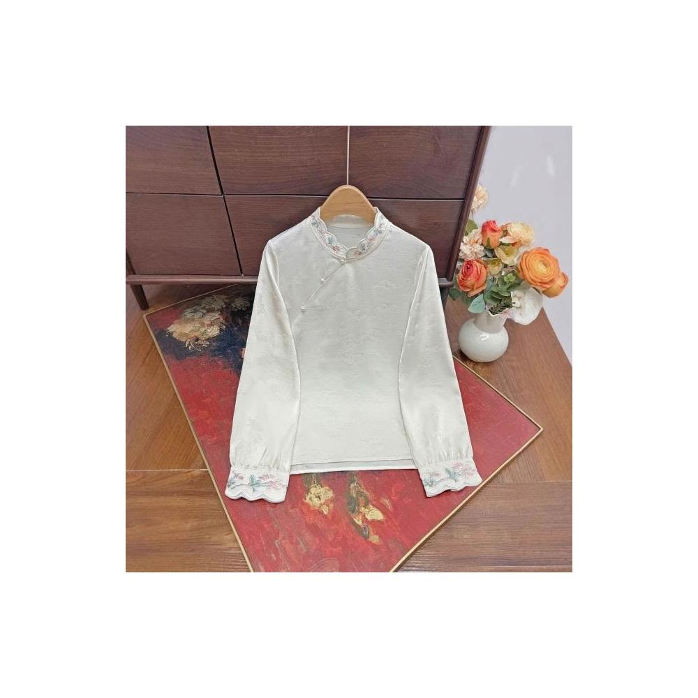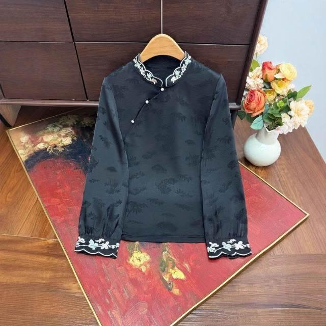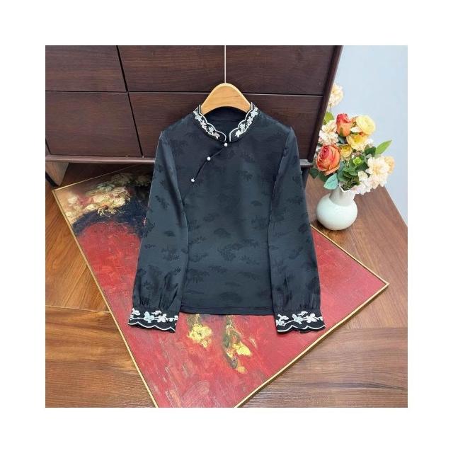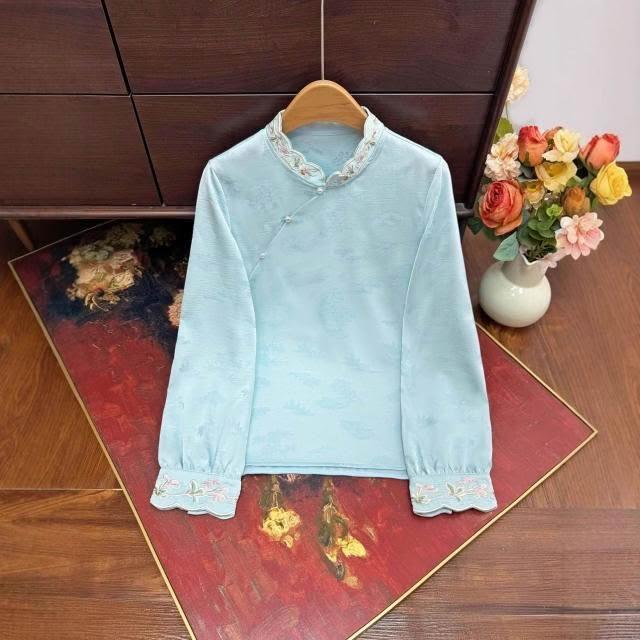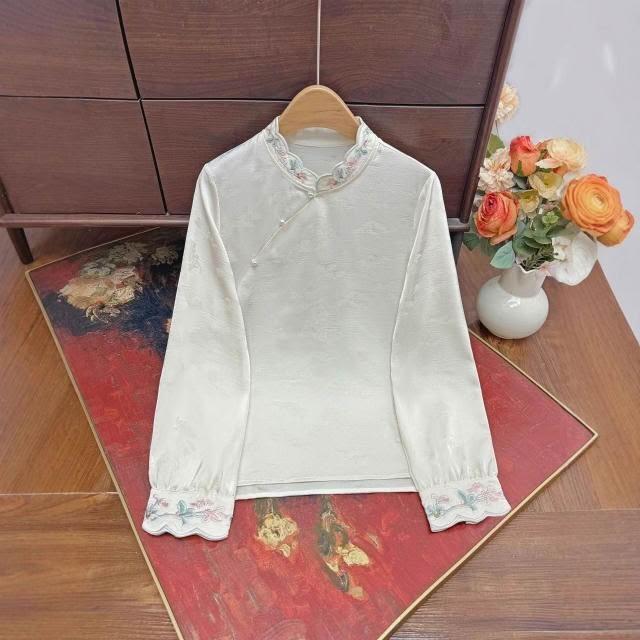 新品 含發票 新中式國風刺繡提花襯衣2025秋季新款立領套頭小衫百搭內搭上衣女