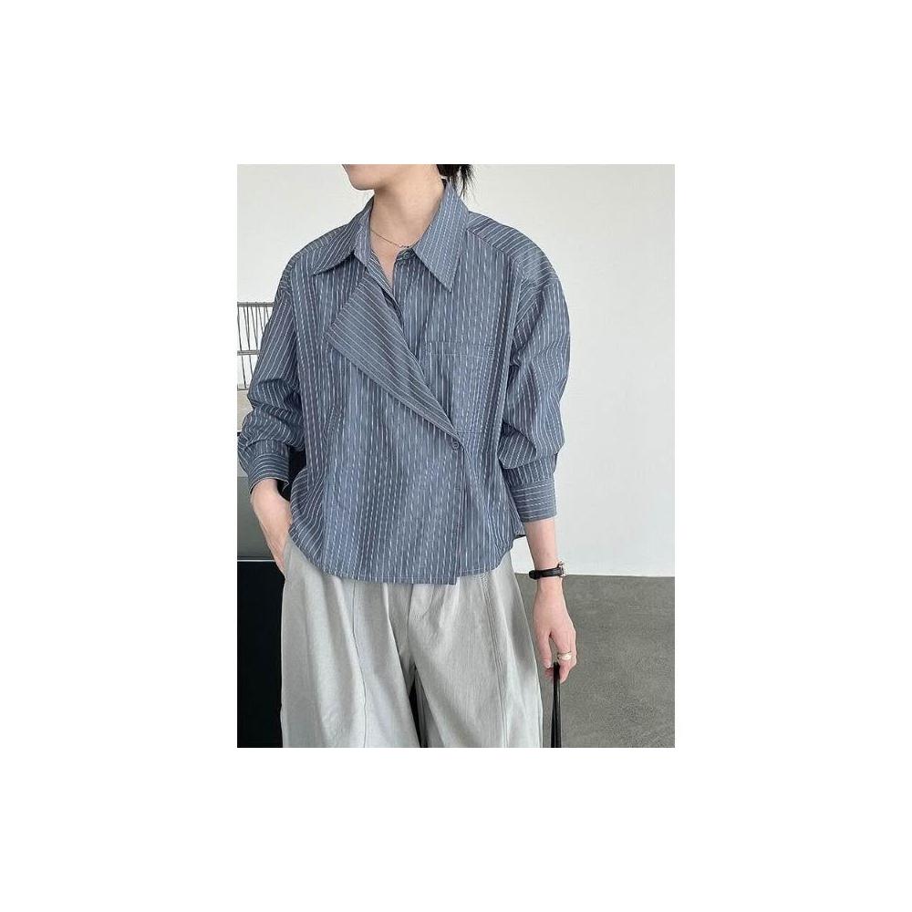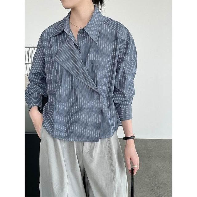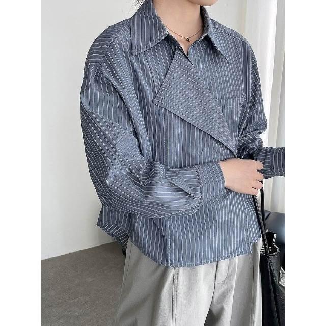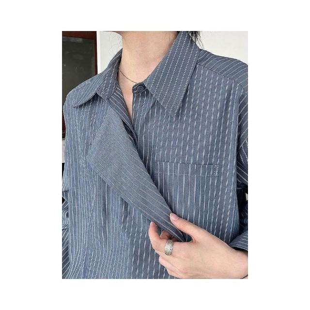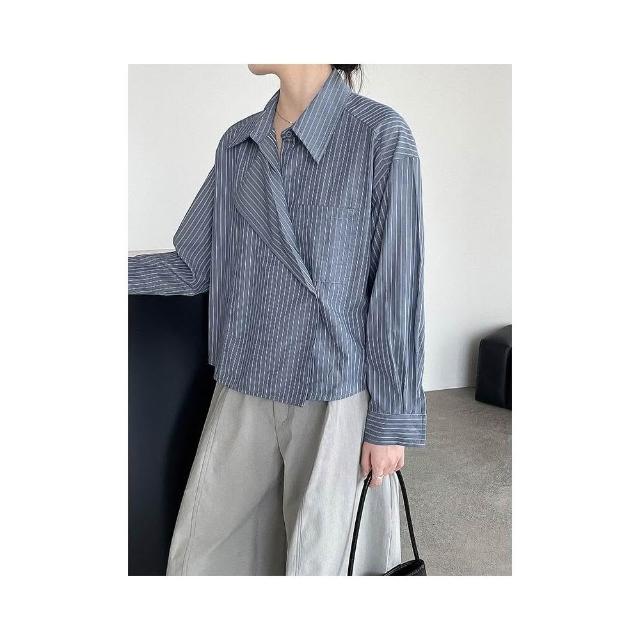 新品 含發票 2025秋新款設計感條紋翻領襯衫女西裝領通勤上衣2802