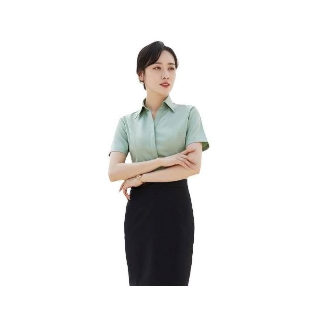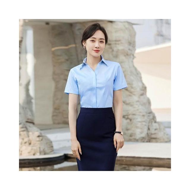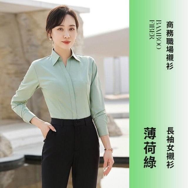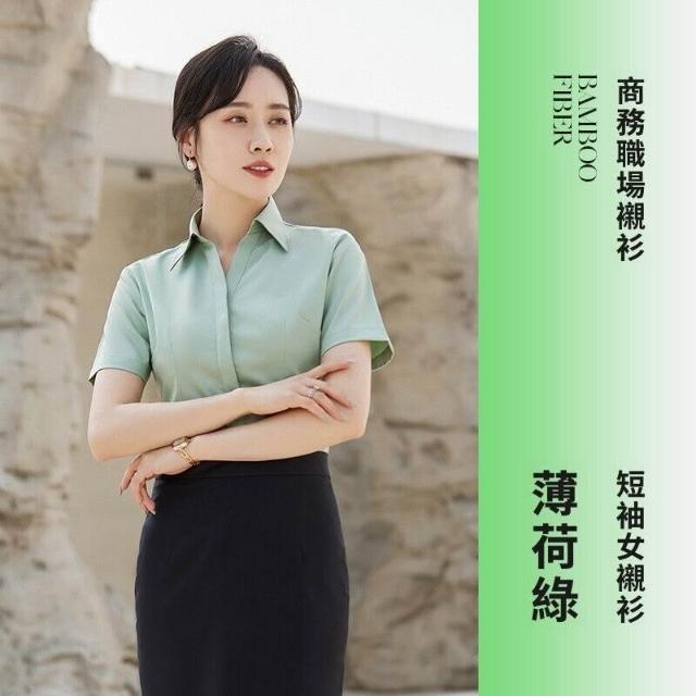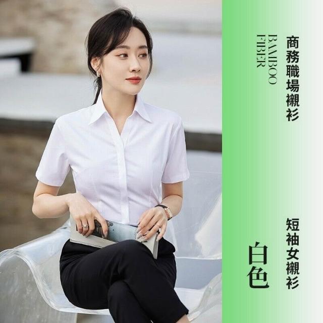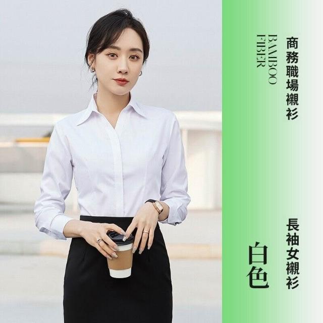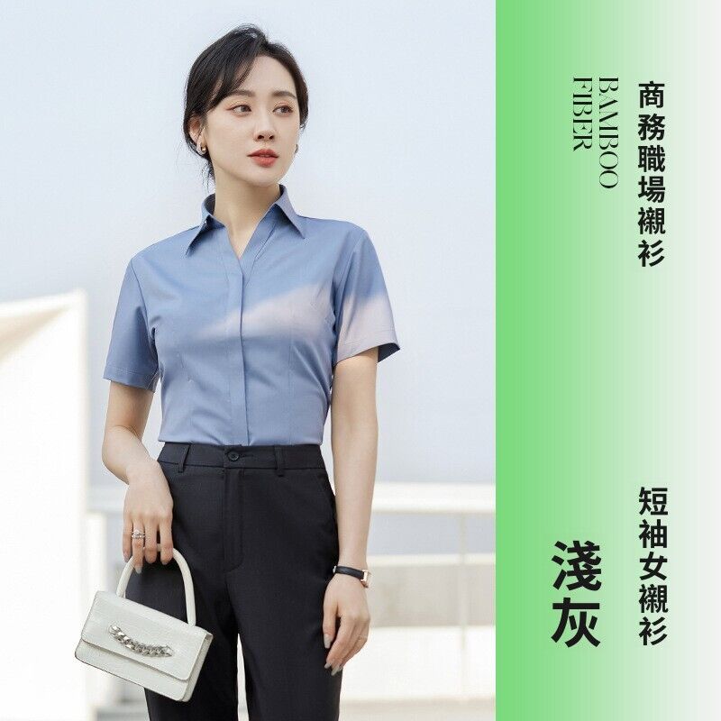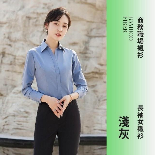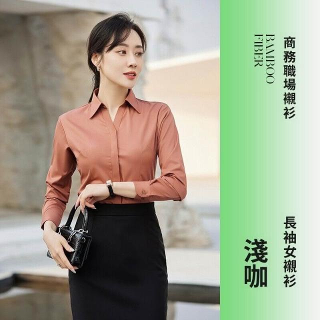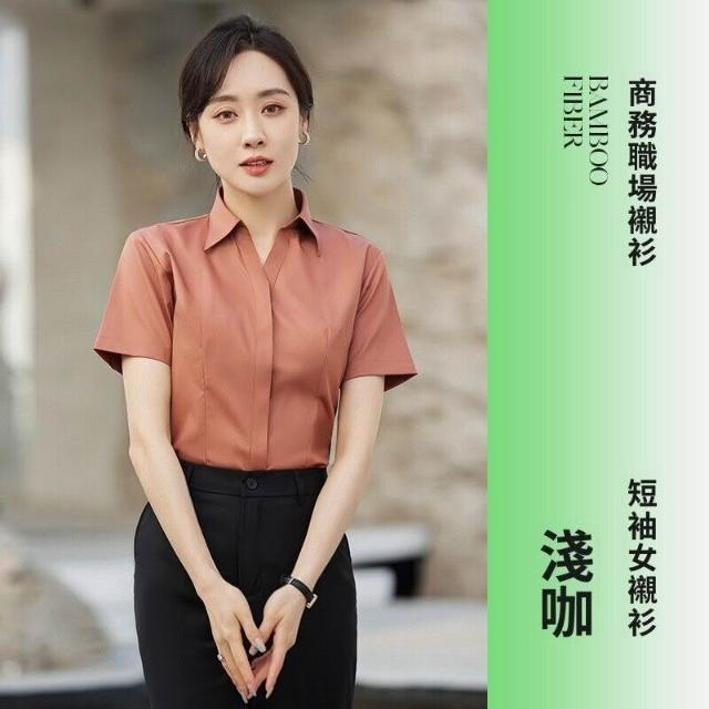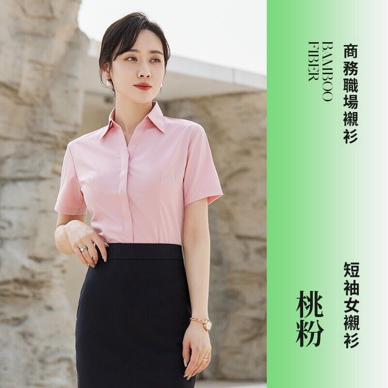新品 含發票 V領粉襯衫女竹纖維彈力工作服酒店前臺售樓部正裝職業襯衣OL 刺繡
