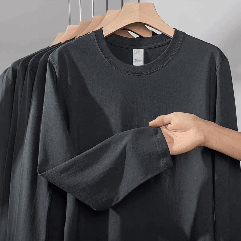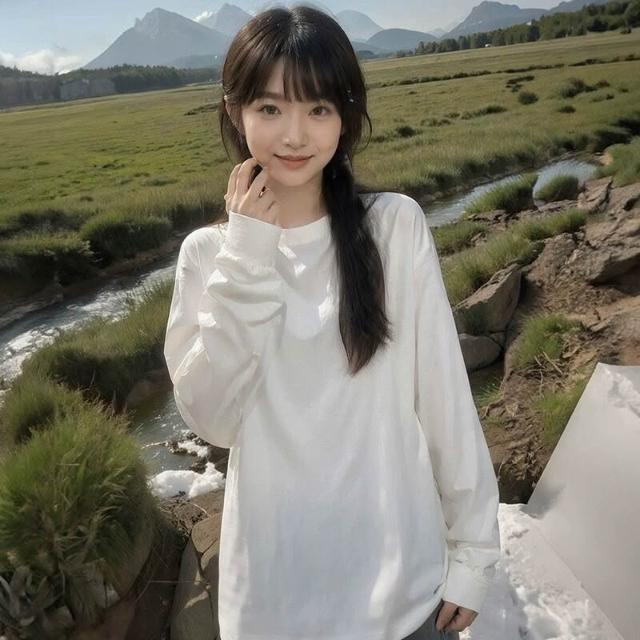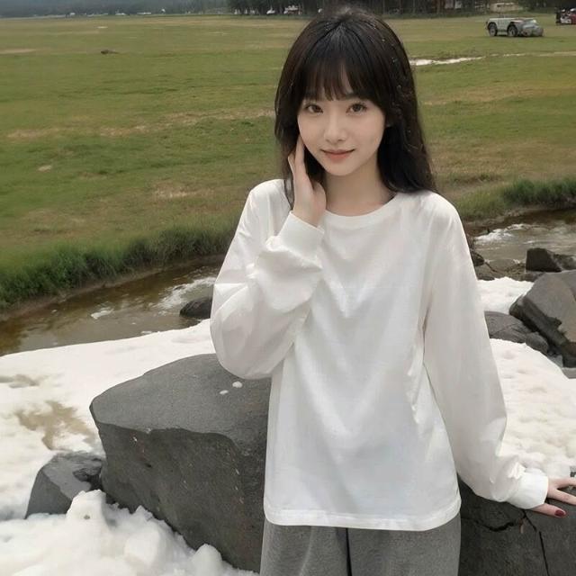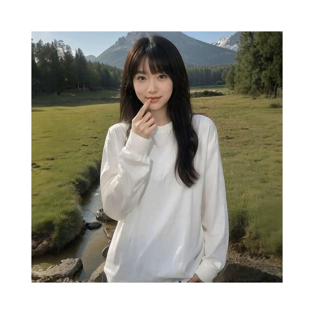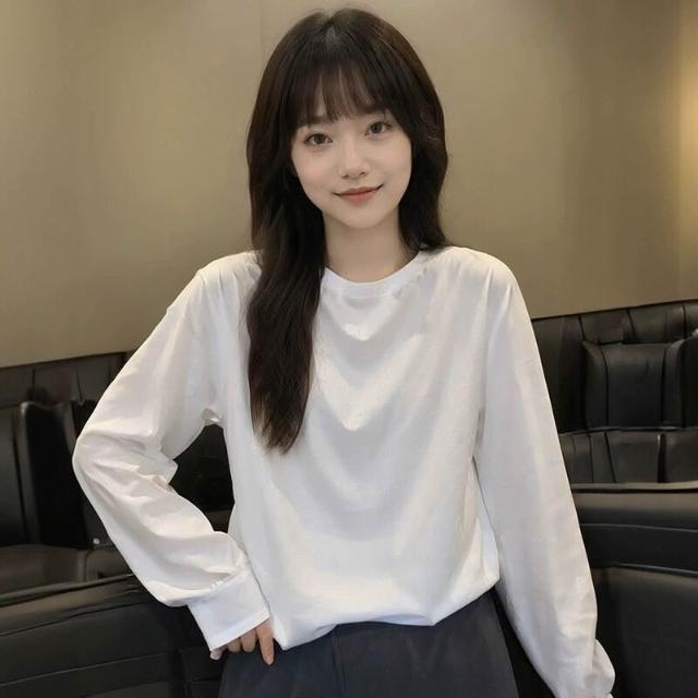 新品 含發票 新疆棉純白色長袖上衣400g重磅t恤女純棉寬松打底衫初春圓領內搭