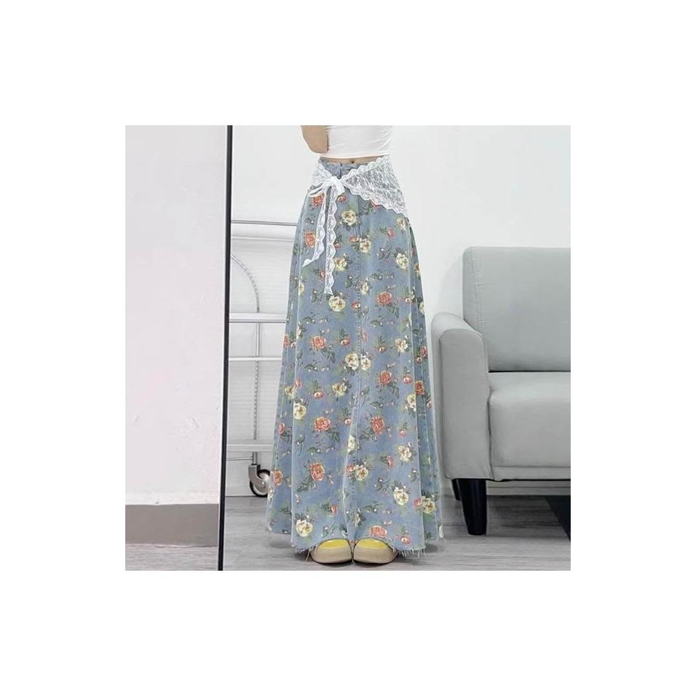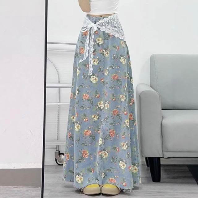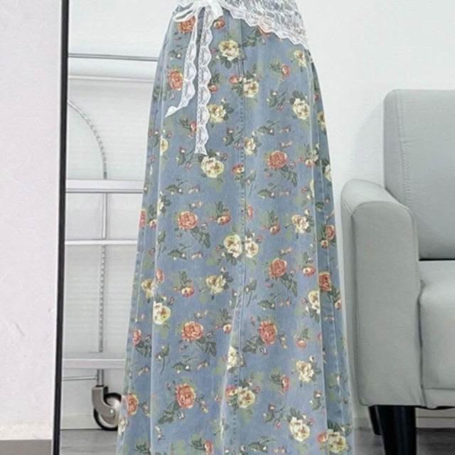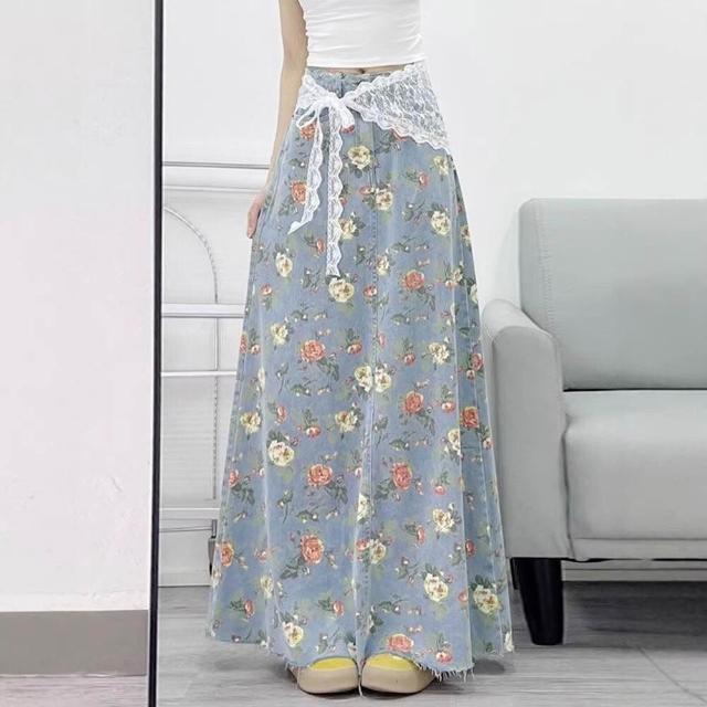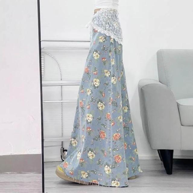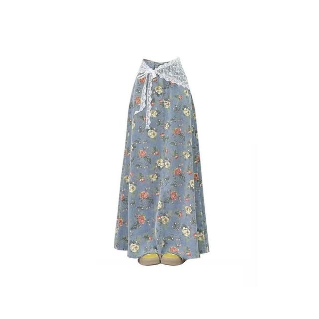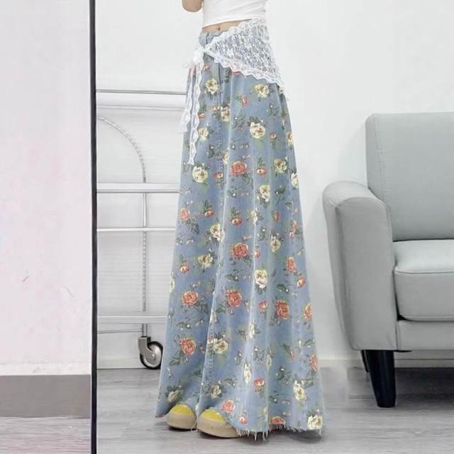新品 含發票 復古碎花牛仔裙子女夏季2026新款小個子高腰顯瘦大擺a字半身長裙