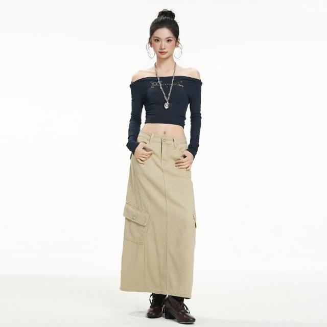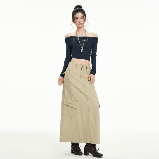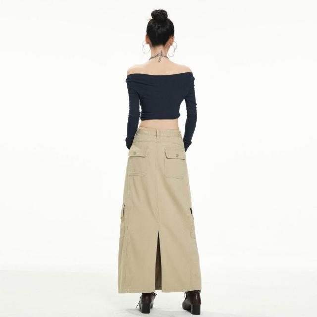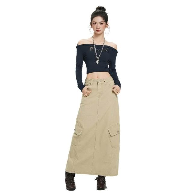 新品 含發票 水洗復古美式牛仔裙女秋季中長款高腰遮胯顯瘦開叉a字包臀半身裙