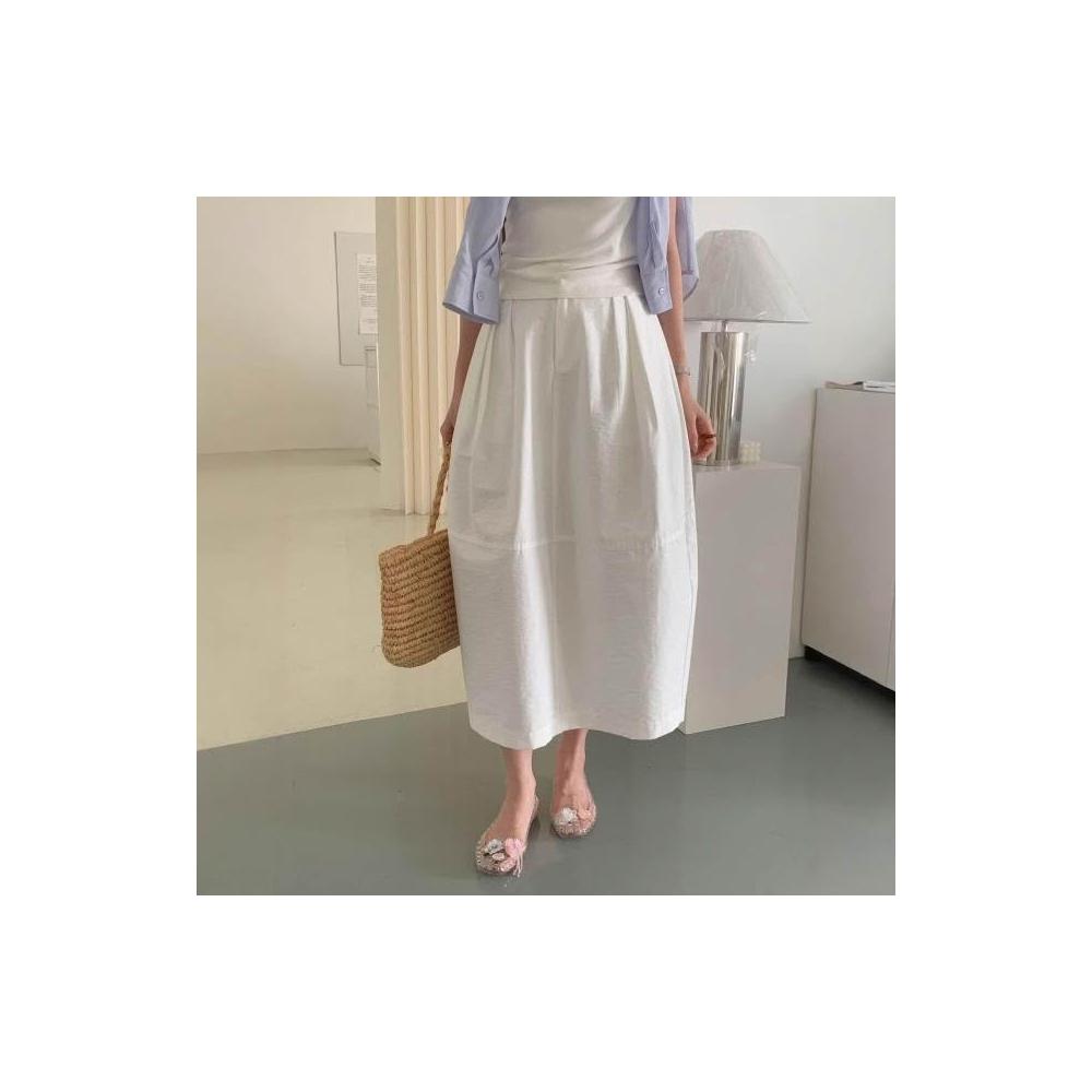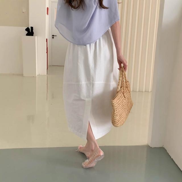 新品 含發票 白色高腰A字半身裙女春夏中長款大擺顯瘦氣質白色中長款氣質長裙