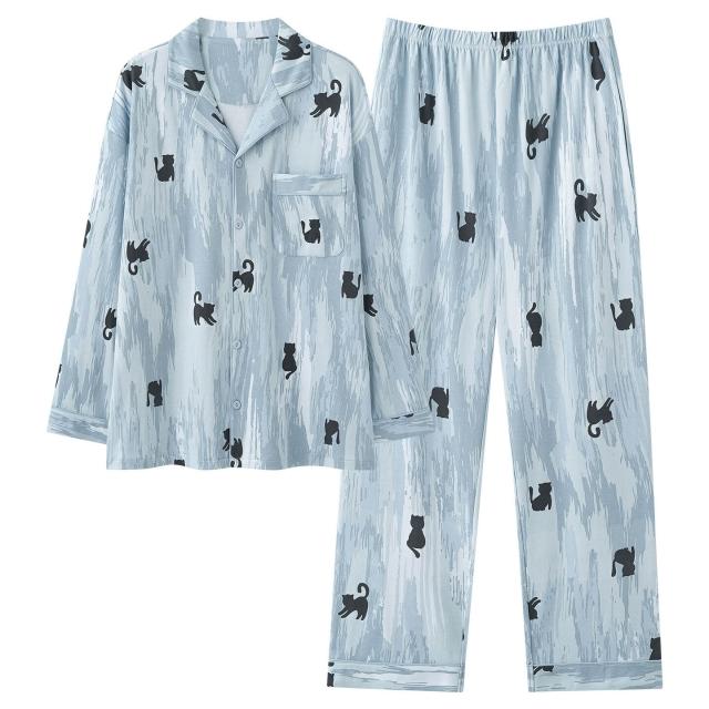 新品 含發票 2025秋季新款男士睡衣100%純棉長袖開衫套裝卡通青少年全棉家居服