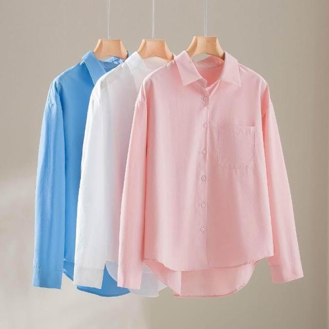 新品 含發票 2026春季新款翻領百搭長袖純色襯衫前短後長時尚寬松休閑上衣女