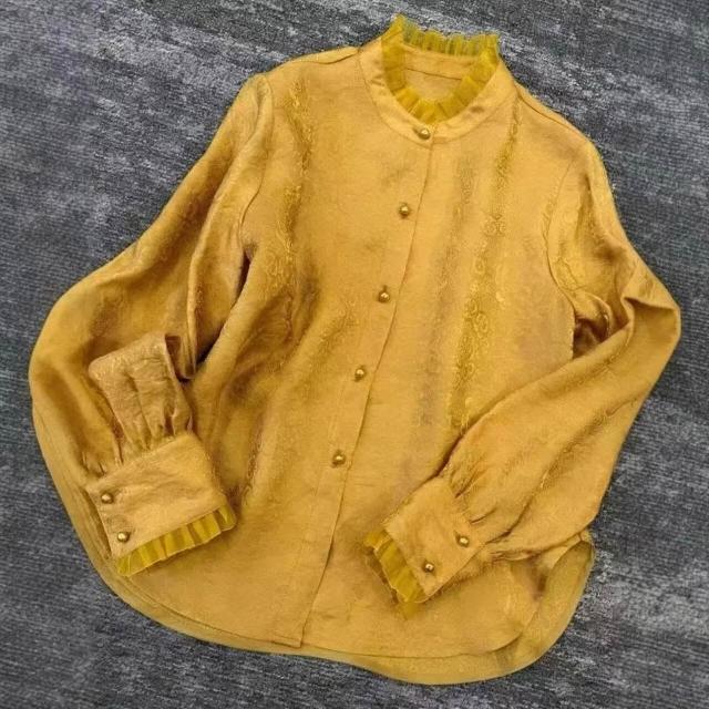 新品 含發票 新中式國風女裝香雲紗浮光錦提花氣質花邊領襯衫氣質百搭襯衣