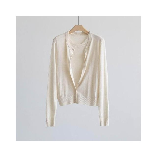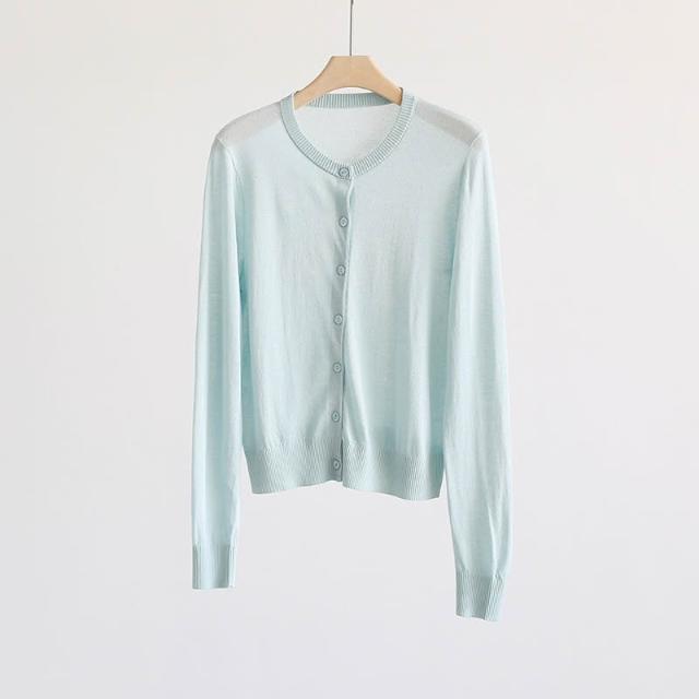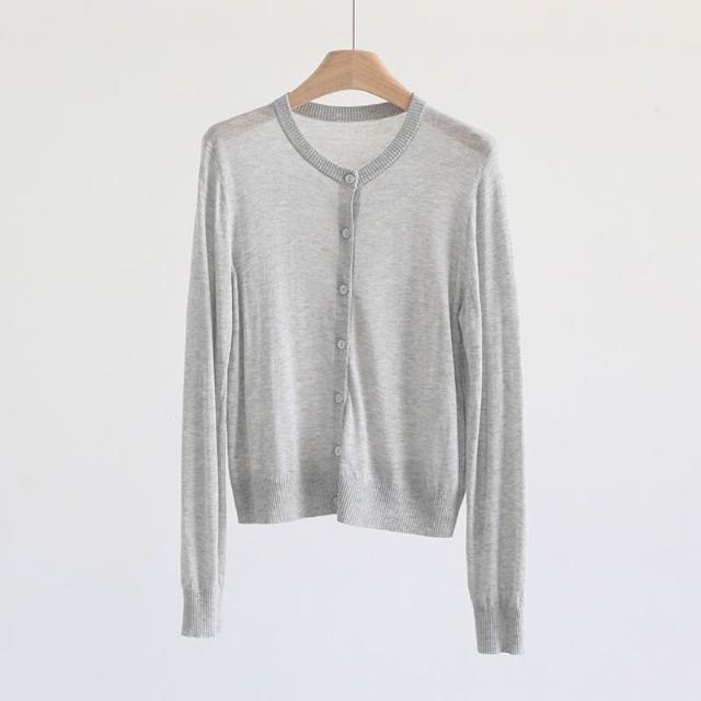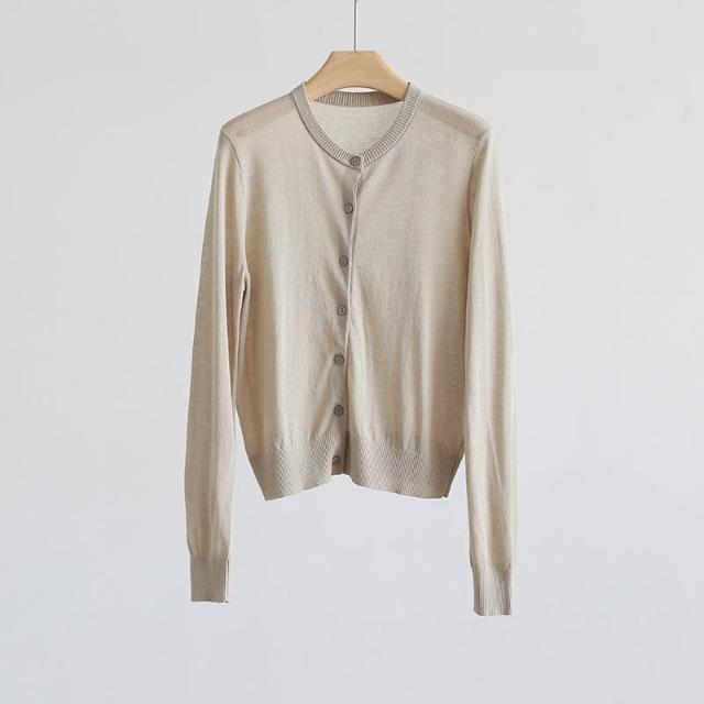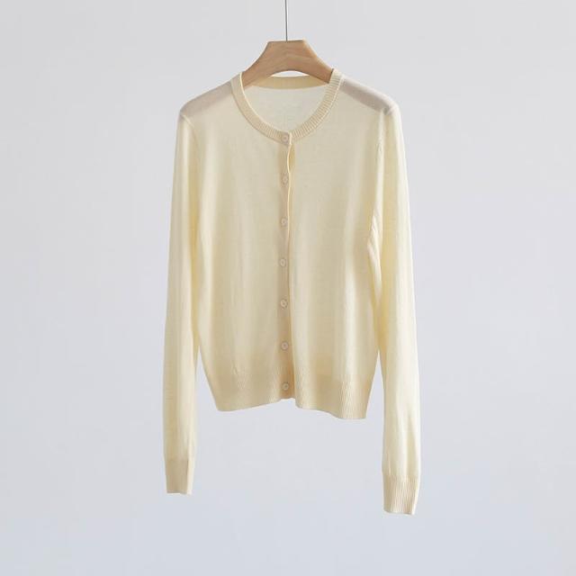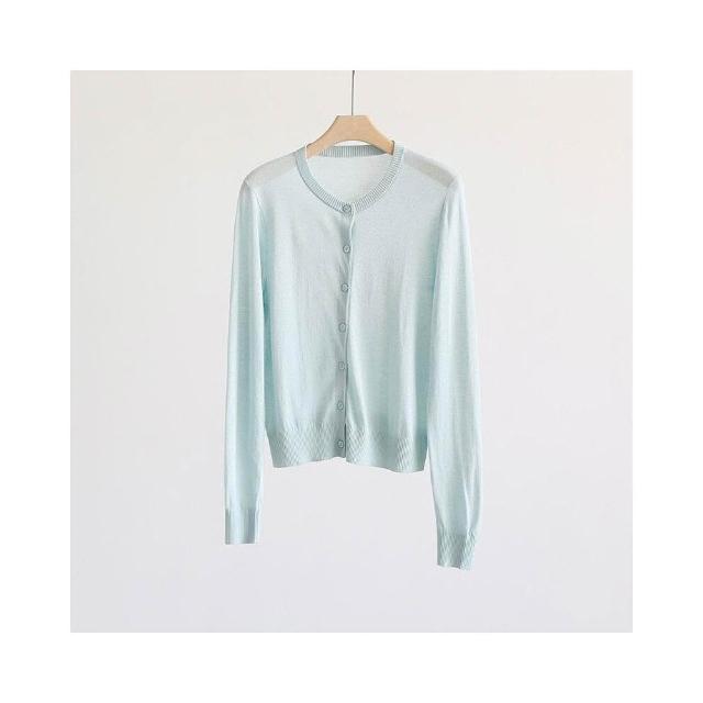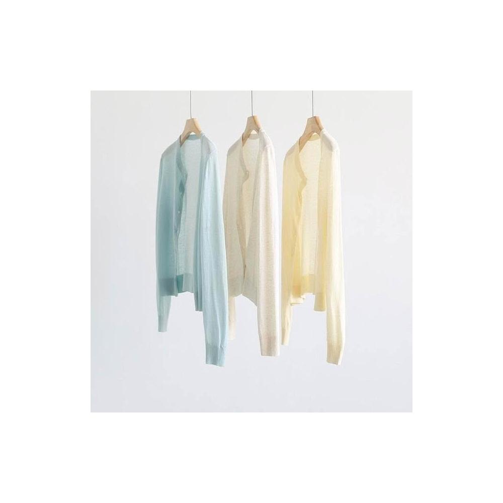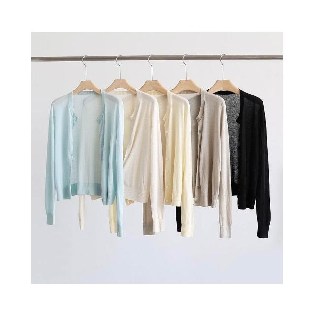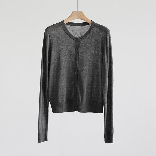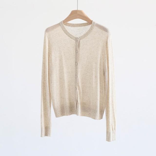 新品 含發票 春夏韓版純色透氣亞麻圓領針織開衫純色薄款長袖外套空調衫防曬衣
