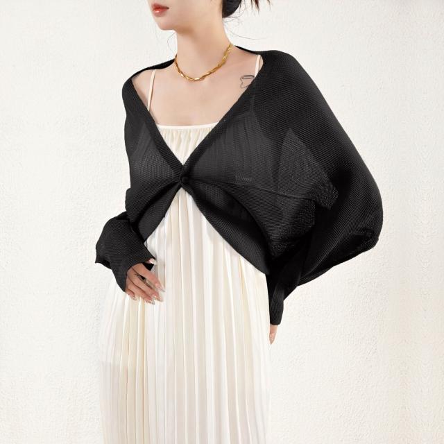 新品 含發票 褶皺開衫外搭罩衫夏季薄款大碼胖mm寬松時尚空調衫防曬T恤上衣女
