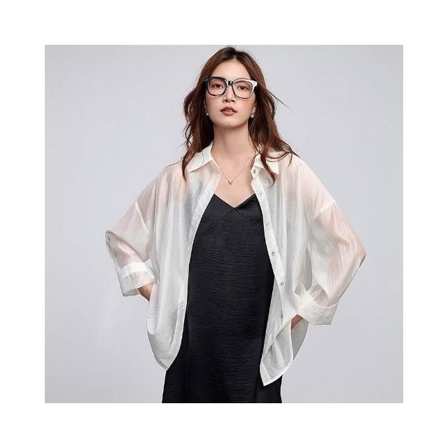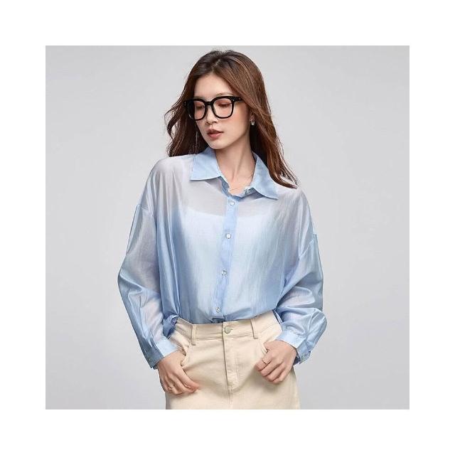 新品 含發票 2025新款天絲襯衫防曬衣女高級垂感百搭光澤感輕薄開叉開衫上衣