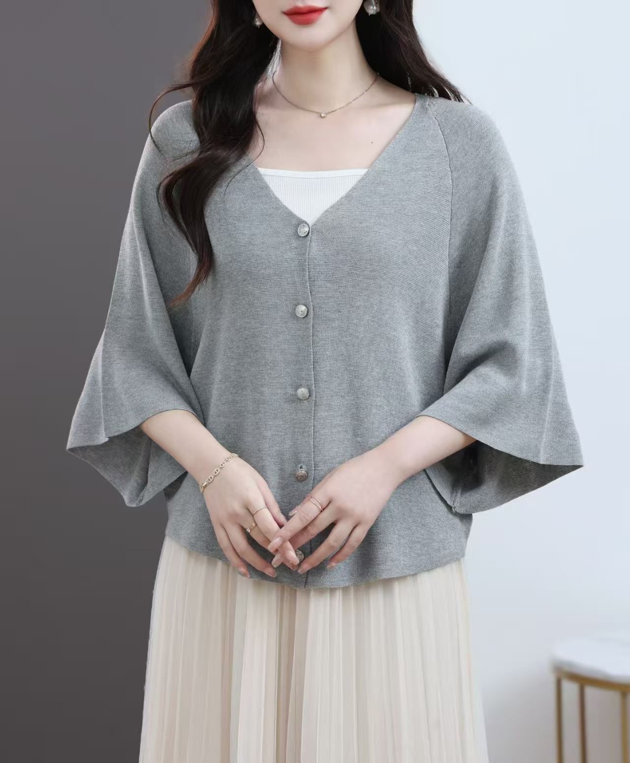 新品 含發票 夏季新款V領針織開衫女寬松薄款防曬外搭慵懶風空調披肩上衣9917