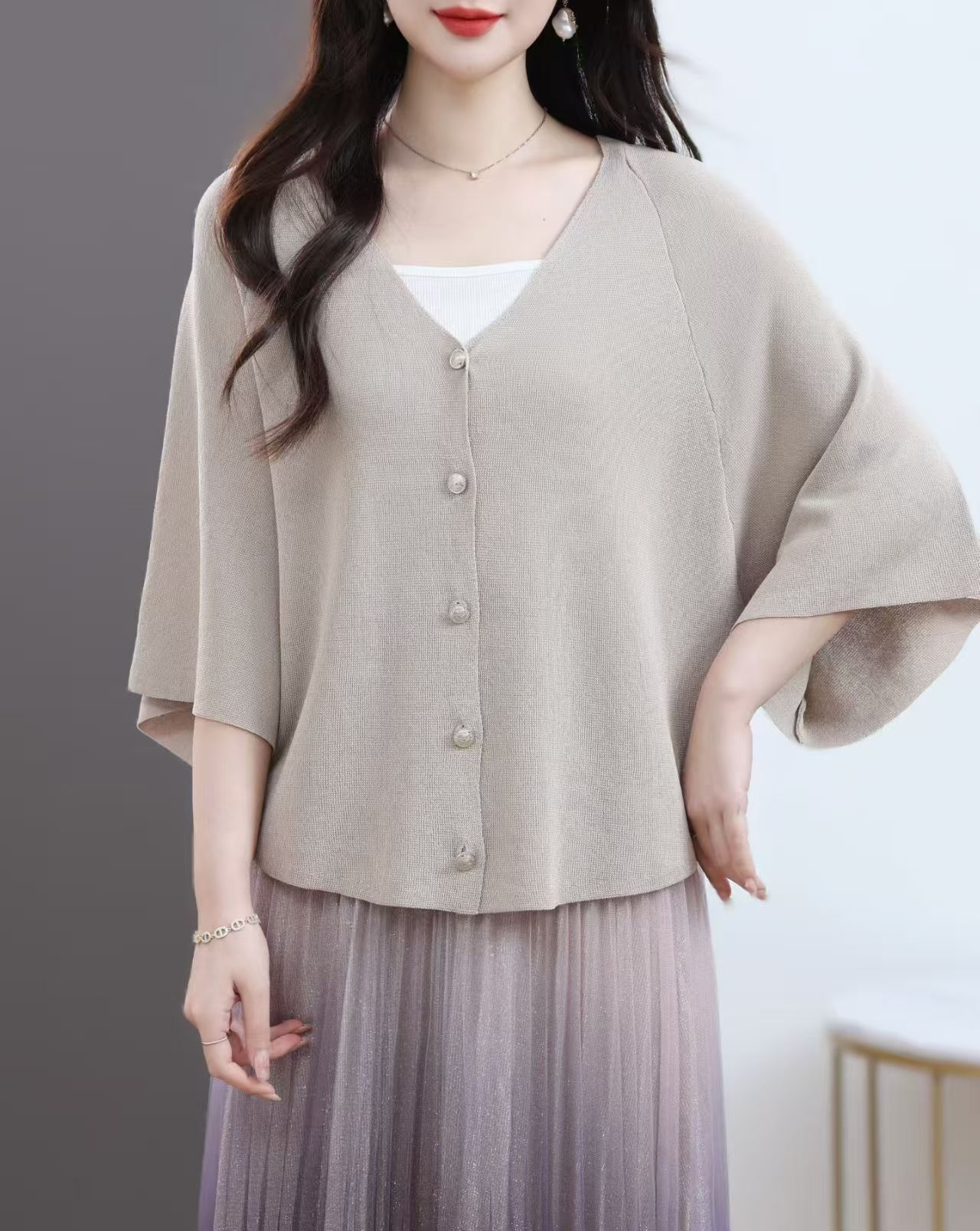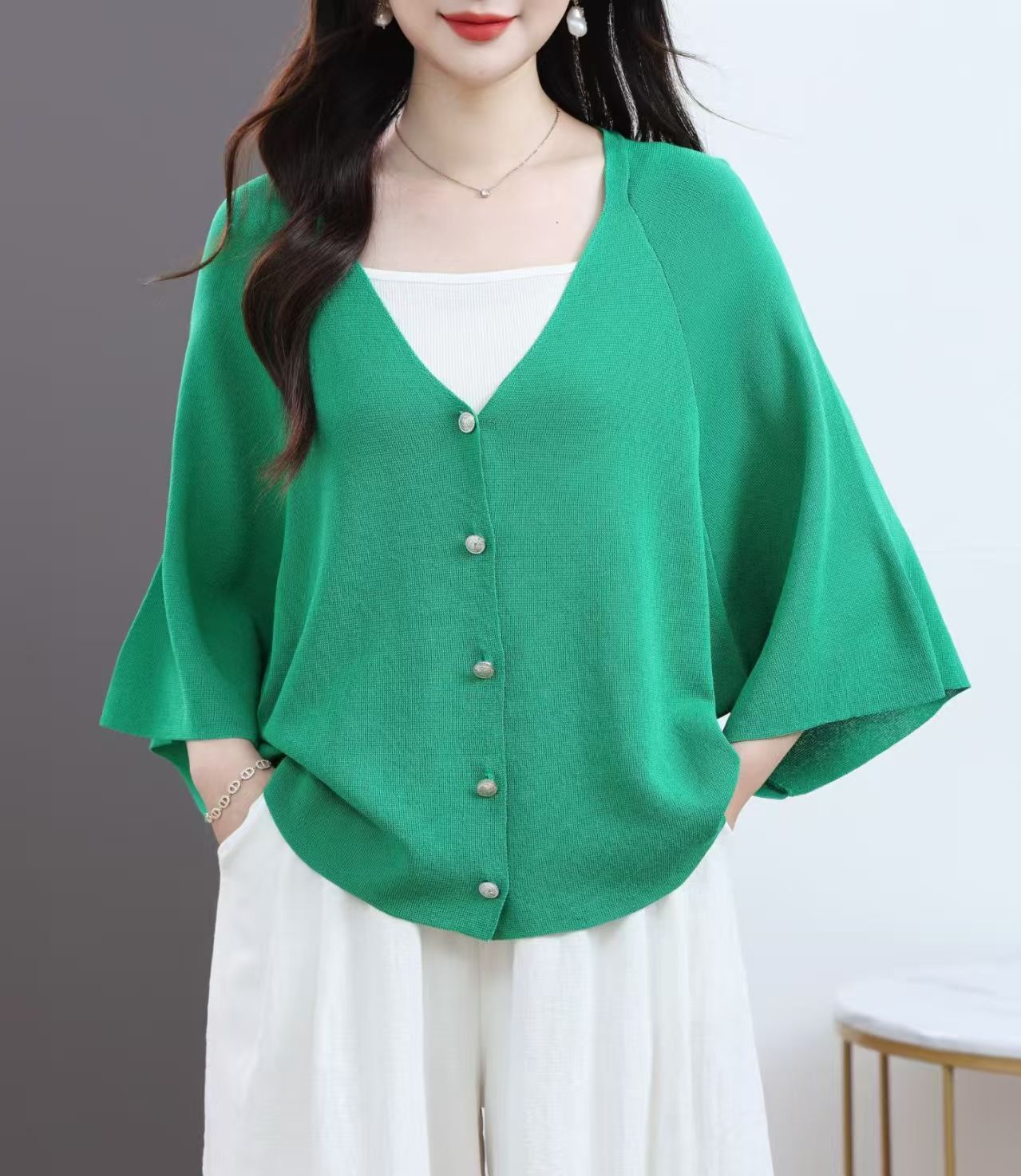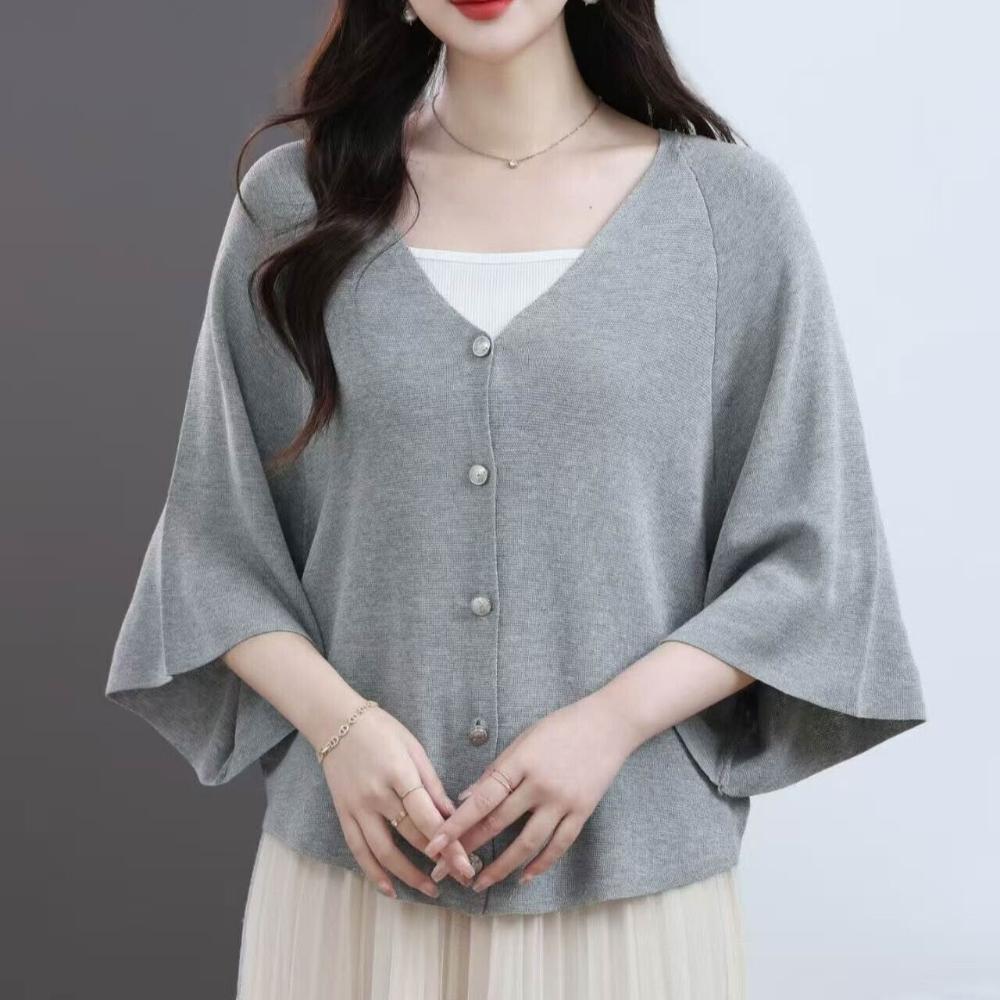 新品 含發票 夏季新款V領針織開衫女寬松薄款防曬外搭慵懶風空調披肩上衣9917