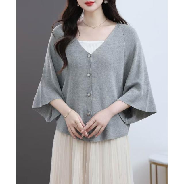 新品 含發票 夏季新款V領針織開衫女寬松薄款防曬外搭慵懶風空調披肩上衣9917