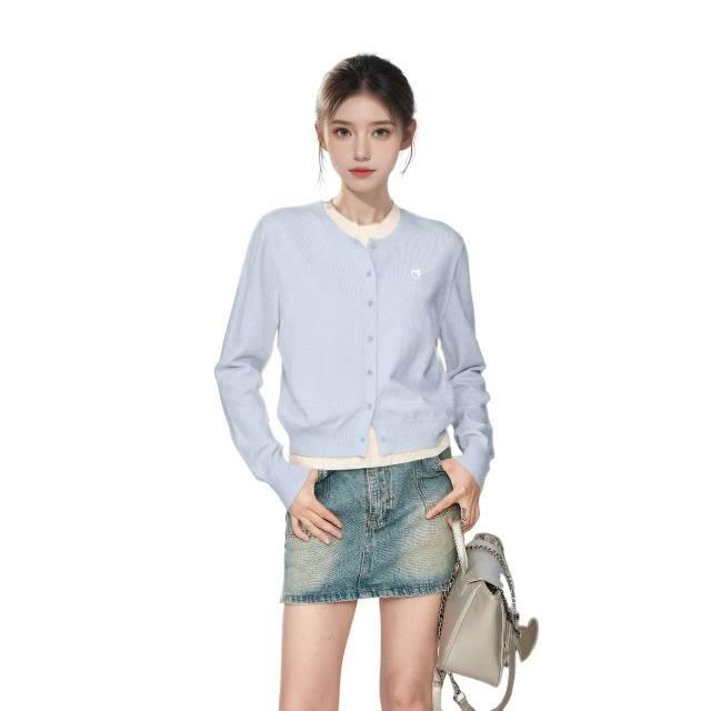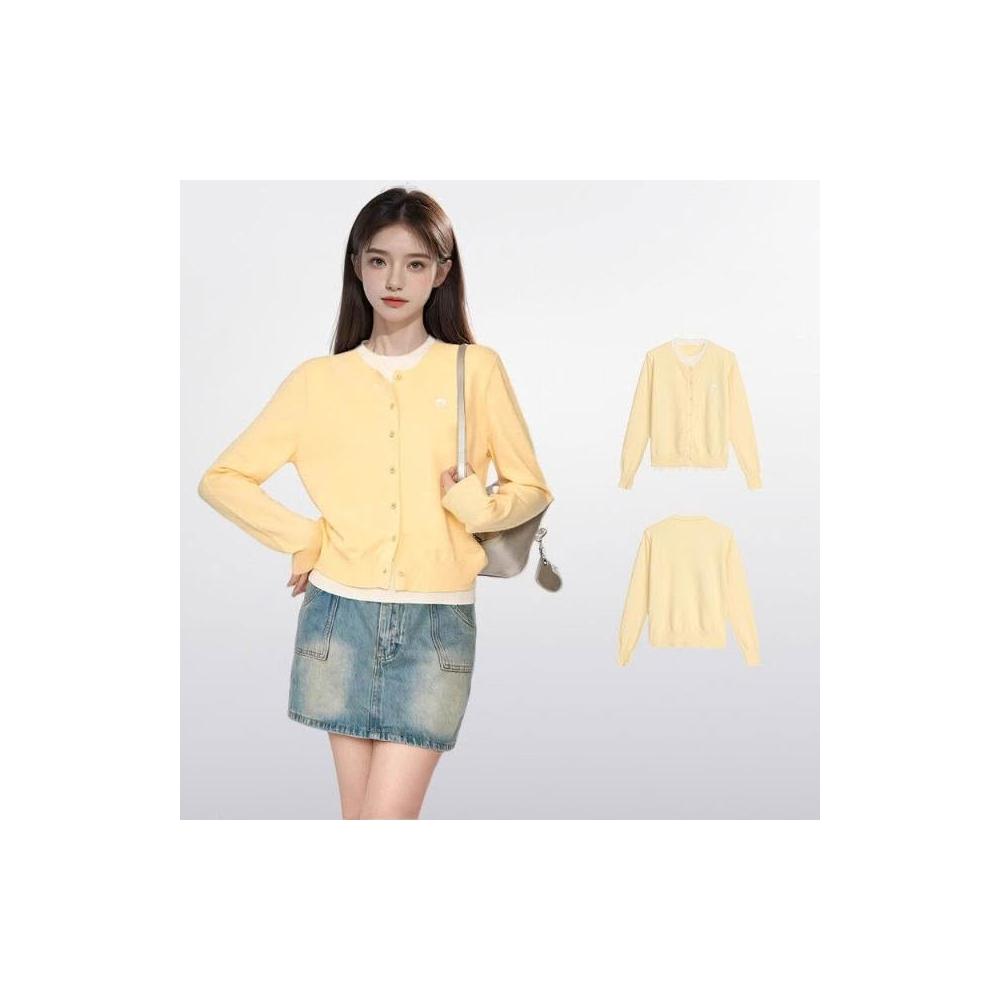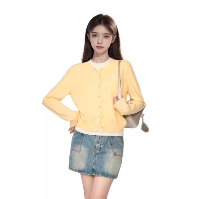 新品 含發票 初秋穿搭鵝黃色假兩件針織衫開衫女秋季早秋新款短款毛衣外套上衣
