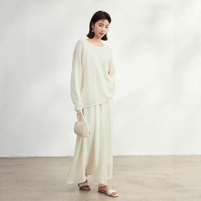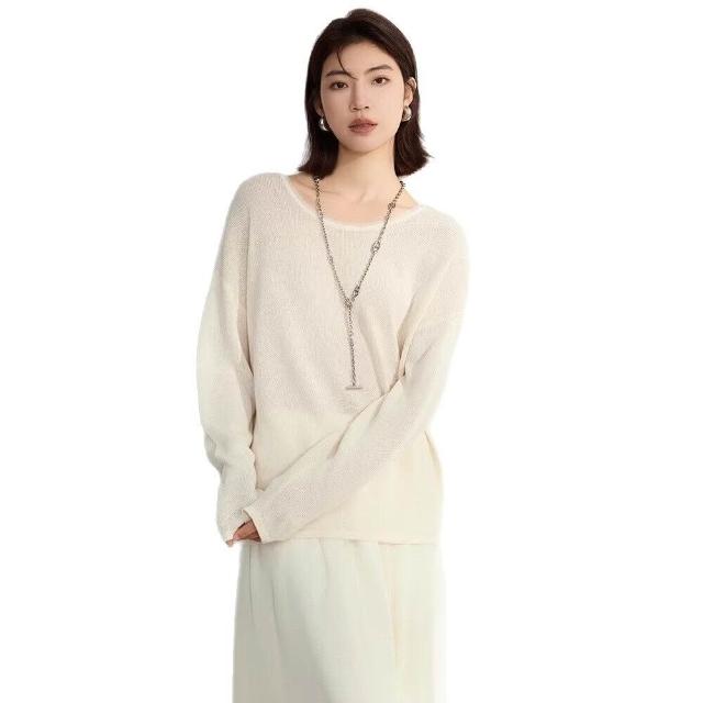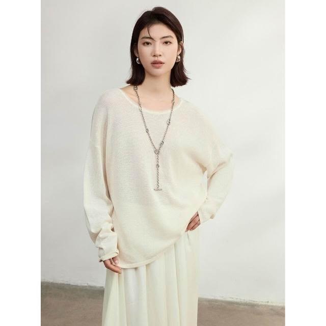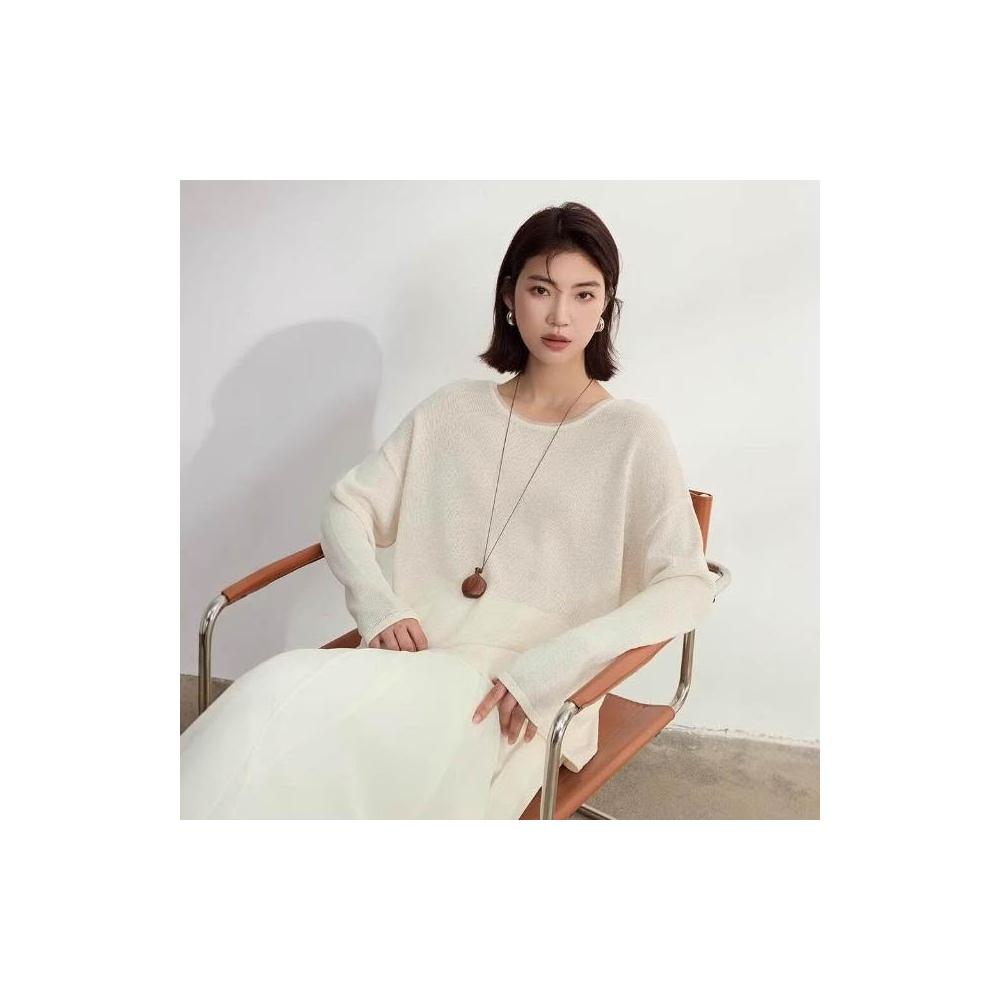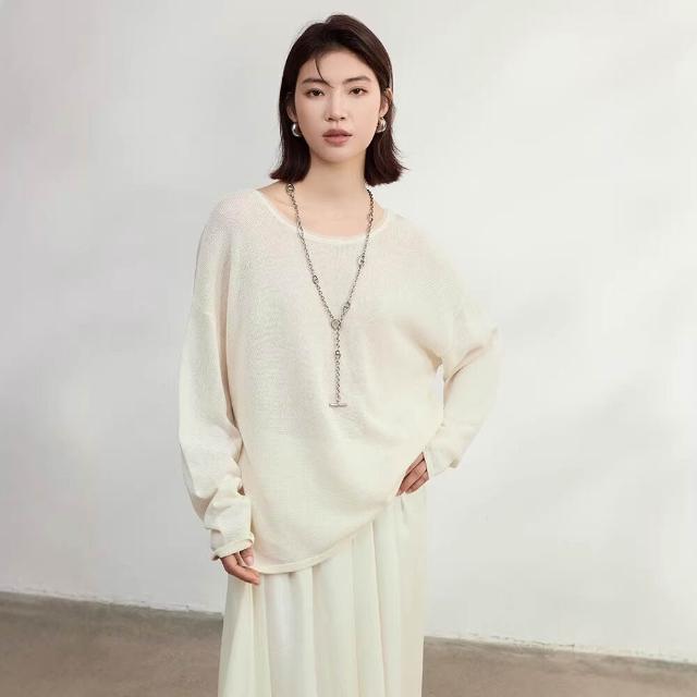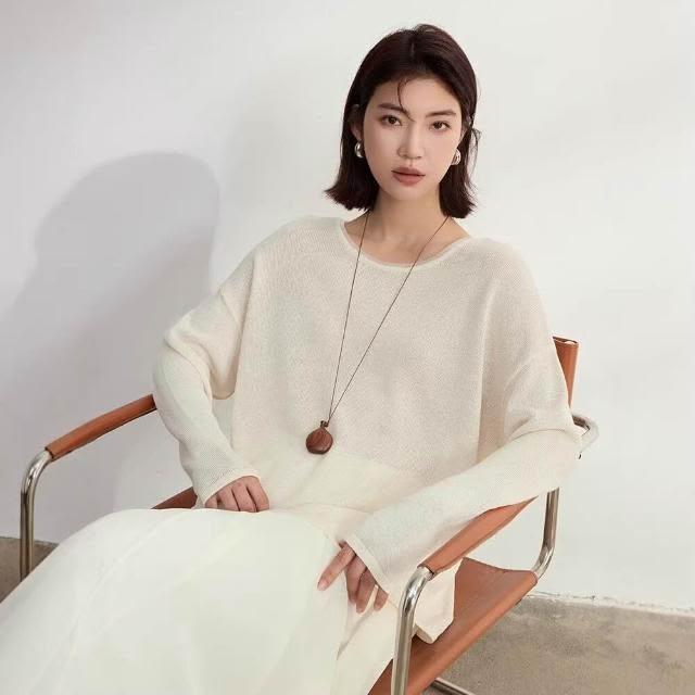 新品 含發票 韓系簡約和紙紗圓領針織衫春季女裝上衣26新款寬松長袖毛衣薄罩衫