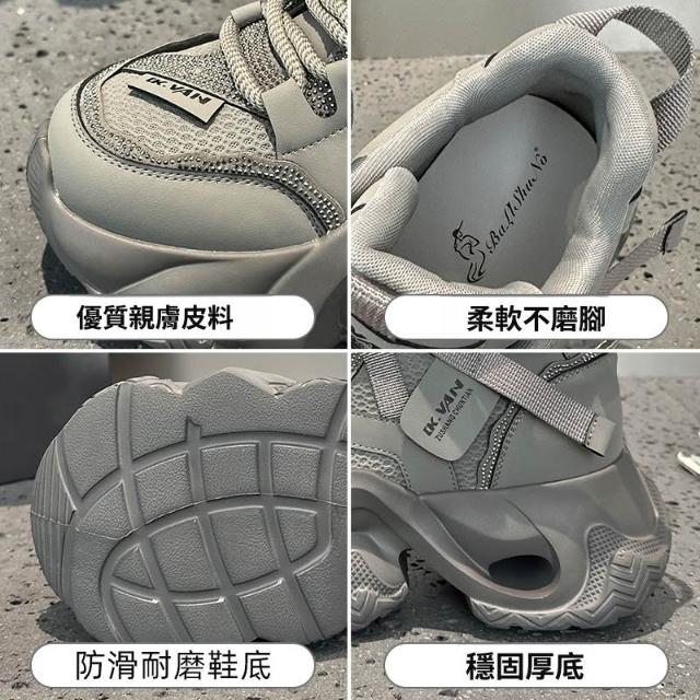 新品 含發票 高幫老爹鞋女2026春秋新款百搭真皮厚底小個子網紅爆款透氣休閑鞋