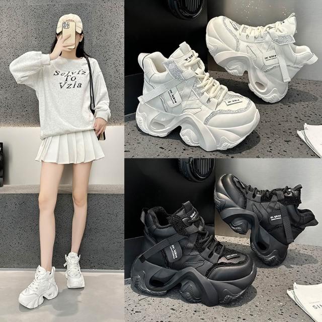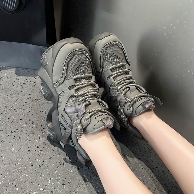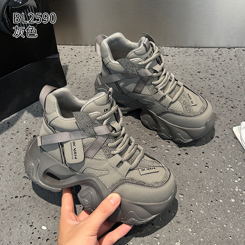 新品 含發票 高幫老爹鞋女2026春秋新款百搭真皮厚底小個子網紅爆款透氣休閑鞋