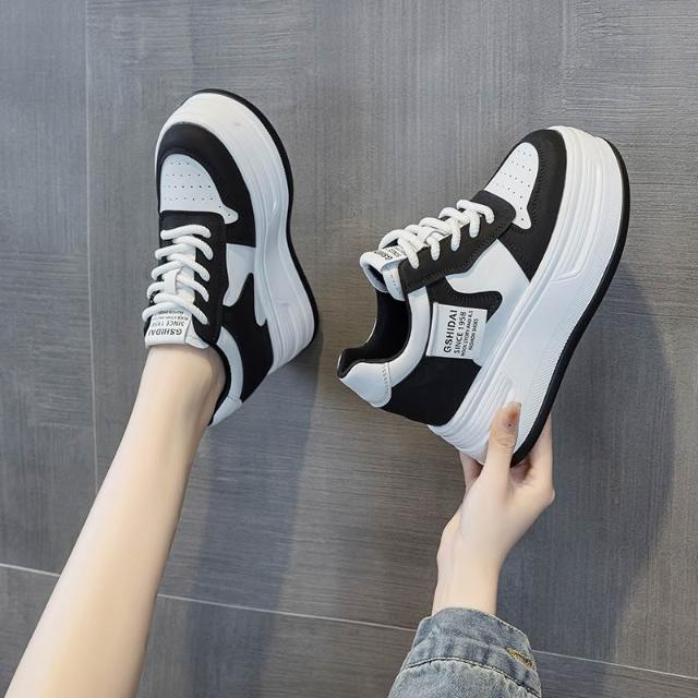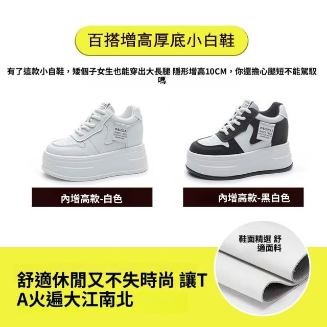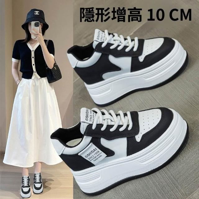 新品 含發票 內增高10cm黑白熊貓板鞋女2025春季新款百搭小個子真皮厚底小白鞋