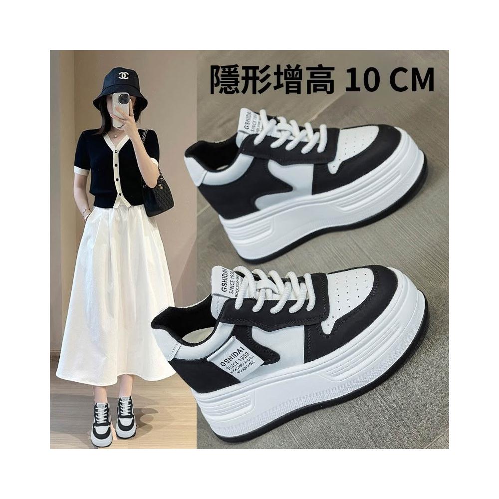 新品 含發票 內增高10cm黑白熊貓板鞋女2025春季新款百搭小個子真皮厚底小白鞋