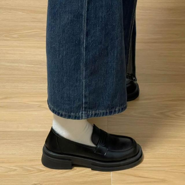 新品 含發票 真軟皮小皮鞋女英倫風2024新款日系jk單鞋黑色厚底配裙子溫柔樂福