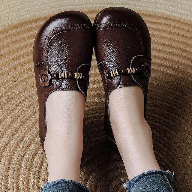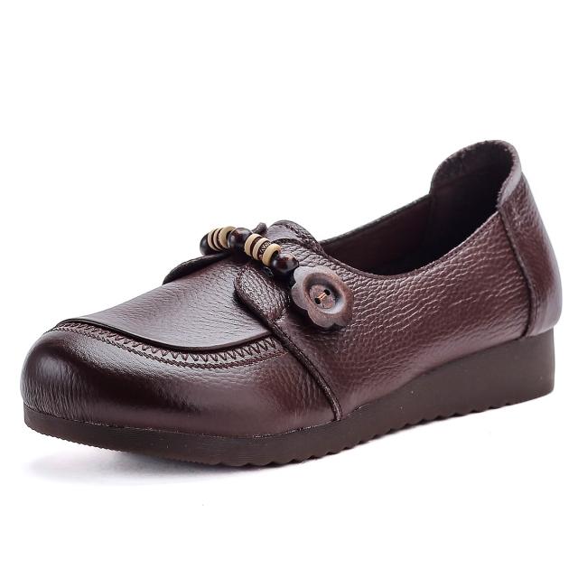新品 含發票 頭層牛皮2026春季新款鞋子女單鞋復古女士皮鞋真皮軟底懶人媽媽鞋