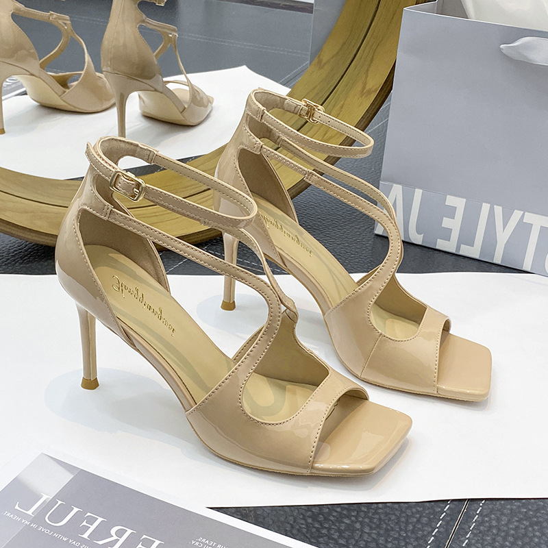 新品 含發票 裸色交叉帶人魚姬高跟涼拖鞋女外穿禦姐性感露趾細跟高跟鞋女涼鞋