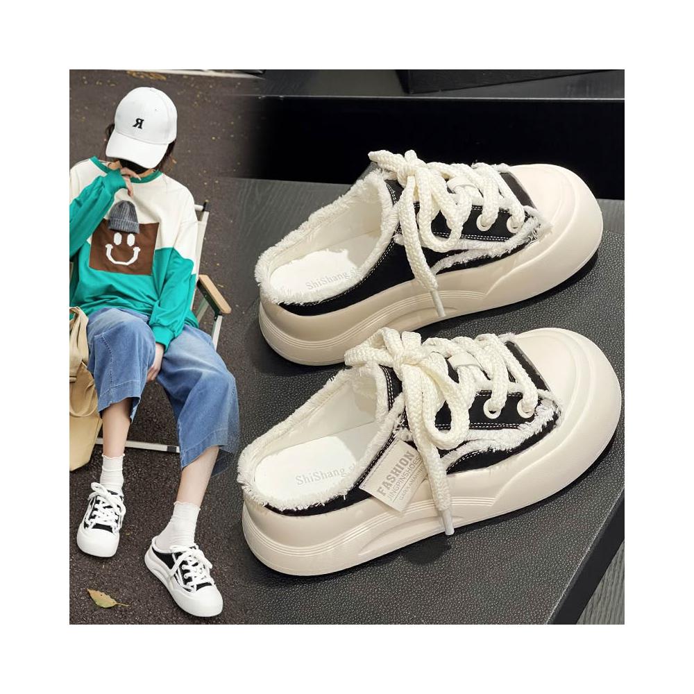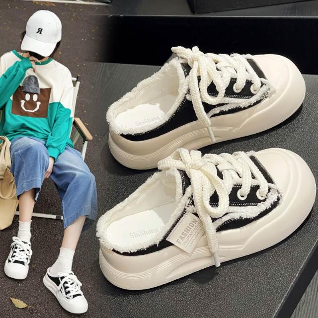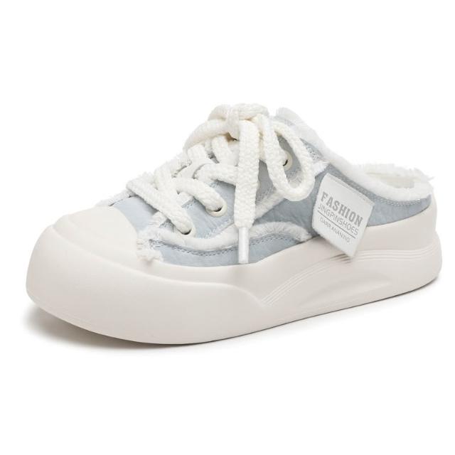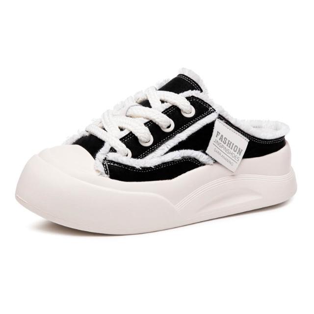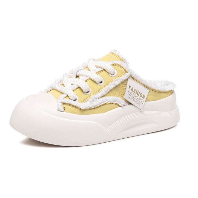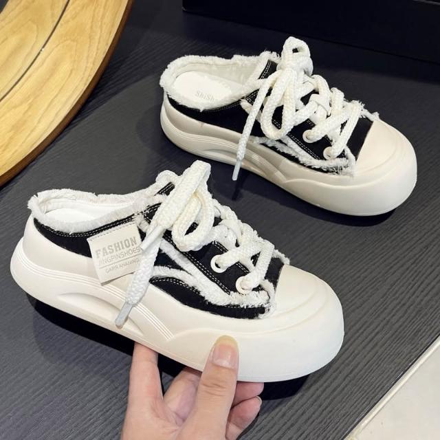新品 含發票 2026新款小眾設計帆布鞋厚底包頭拖鞋女款夏季爆款透氣懶人半拖鞋