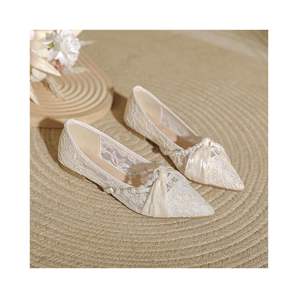 新品 含發票 法式氣質女鞋平底2025新款仙女風珍珠伴娘單鞋網紗透氣溫柔涼鞋女