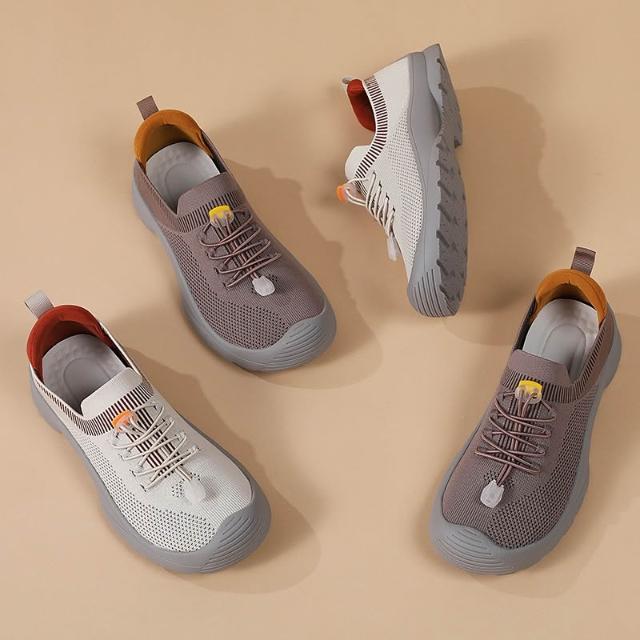 新品 含發票 網面女鞋軟底透氣飛織健步鞋輕便舒適一腳蹬防滑媽媽鞋休閑單鞋女
