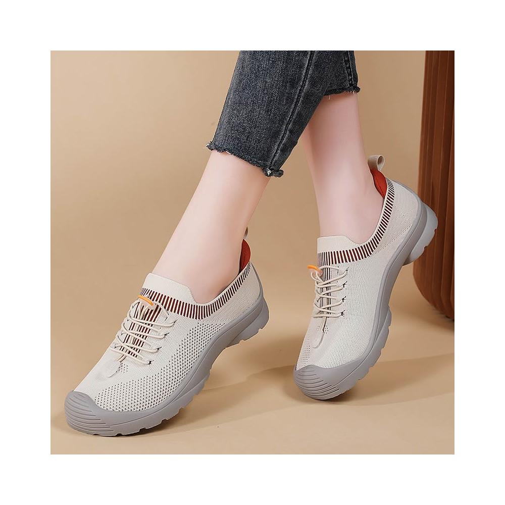 新品 含發票 網面女鞋軟底透氣飛織健步鞋輕便舒適一腳蹬防滑媽媽鞋休閑單鞋女