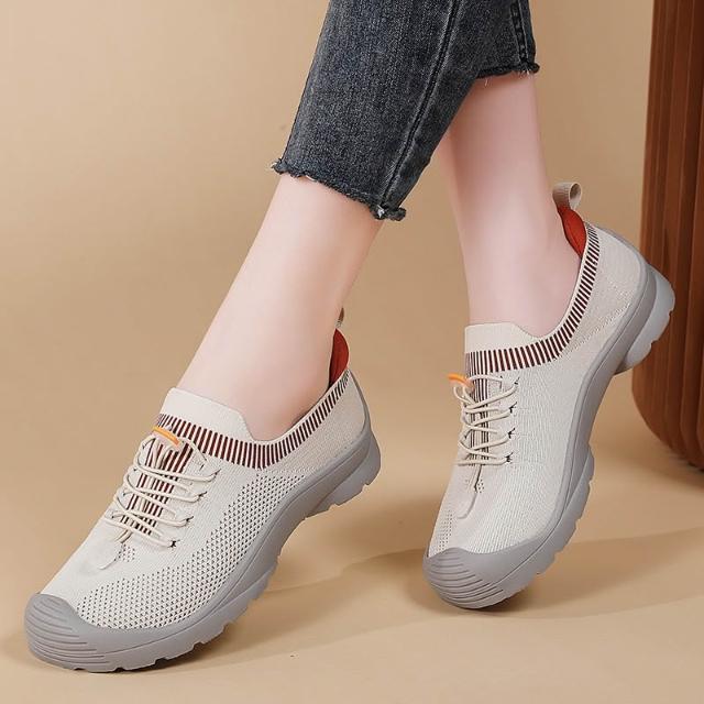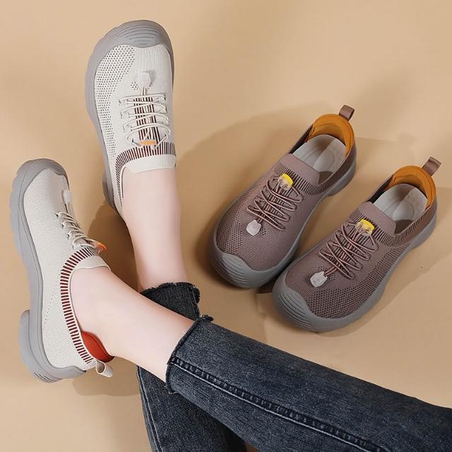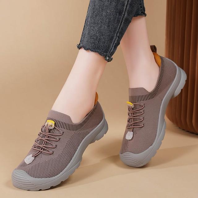 新品 含發票 網面女鞋軟底透氣飛織健步鞋輕便舒適一腳蹬防滑媽媽鞋休閑單鞋女