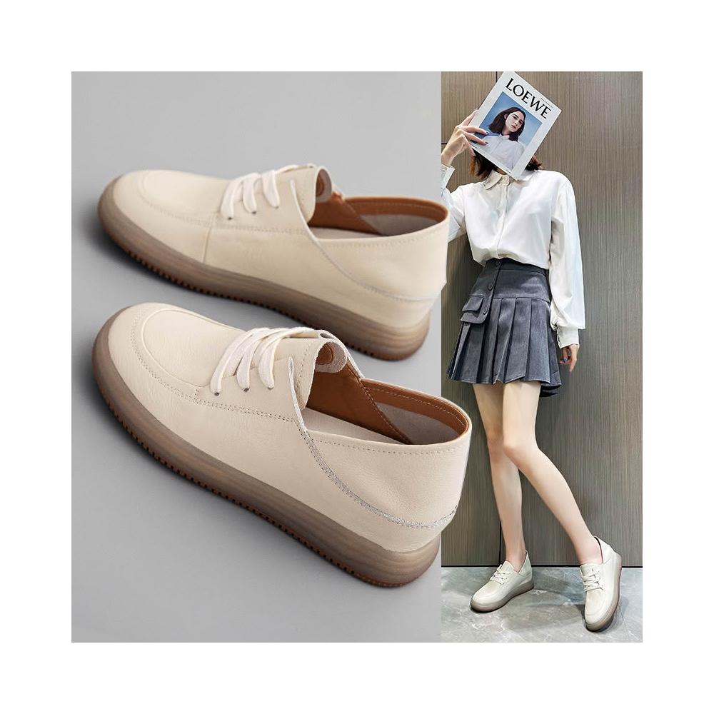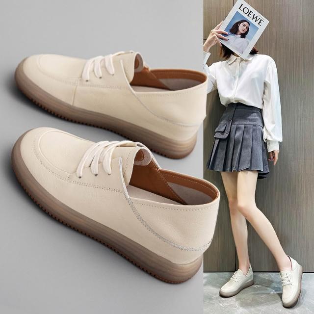 新品 含發票 頭層牛皮內增高小白鞋女薄款2026春新款女鞋軟皮軟底一腳蹬女單鞋