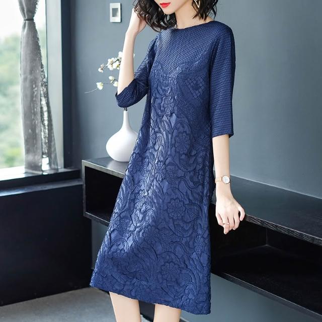 繡花連衣裙秋裝2026新款女寬松大碼時尚氣質中年媽媽裝過膝a字裙