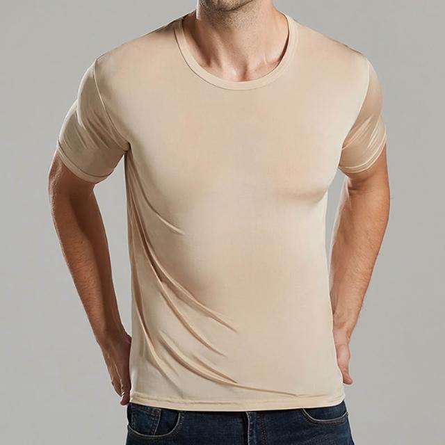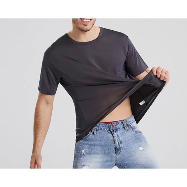 新品 含發票 100%桑蠶絲男夏薄款透氣T恤老頭衫針織真絲睡衣家居服休閑上衣