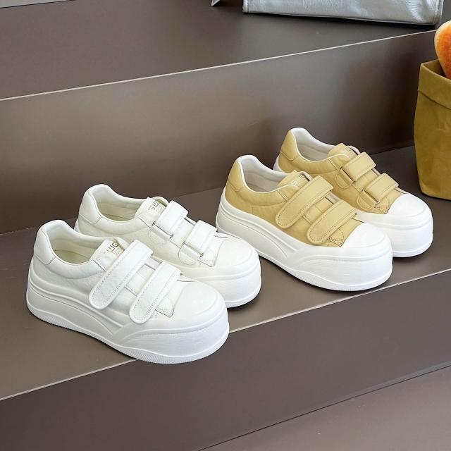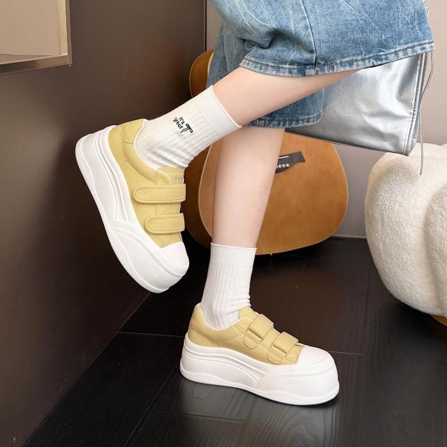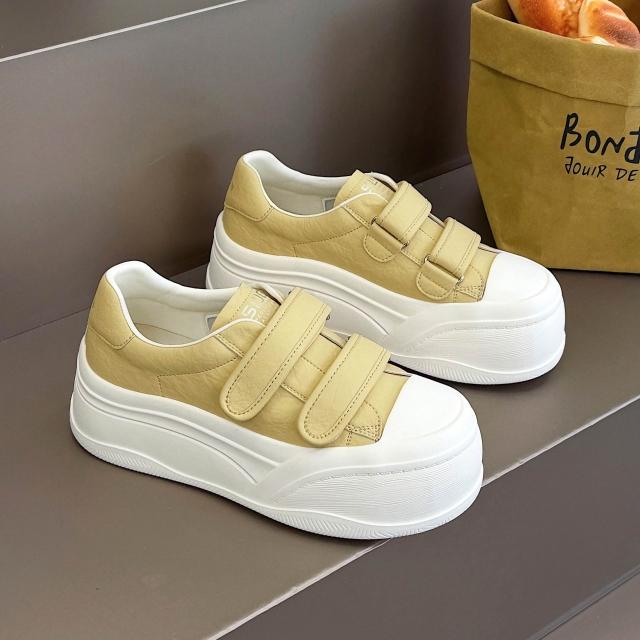 新品 含發票 春季娃娃頭大頭魔術貼2026新款厚底松糕小白鞋面包鞋休閑女鞋