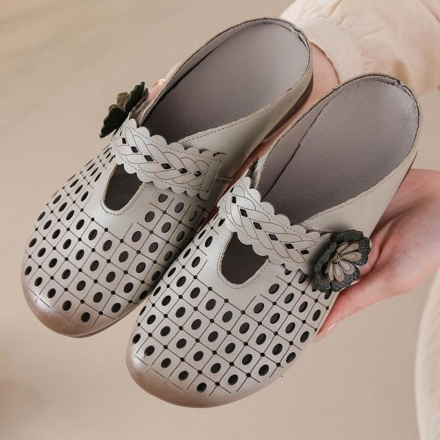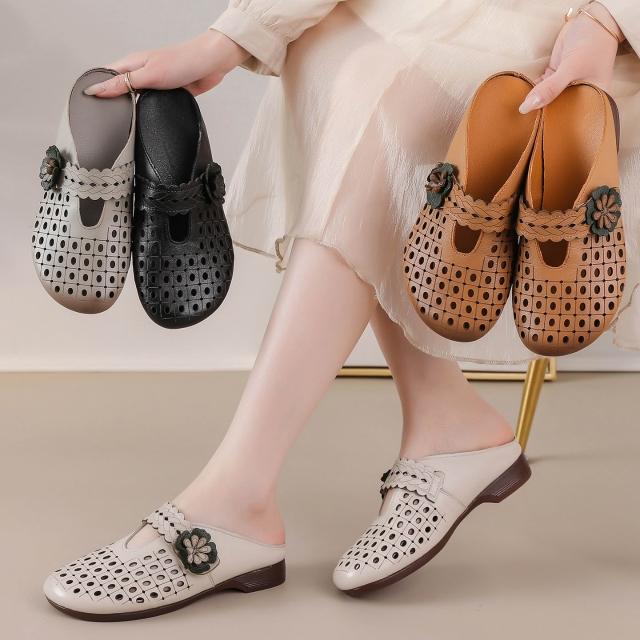 新品 含發票 真皮拖鞋女外穿夏配裙子半拖2026年新款包頭涼拖牛筋底女款涼拖鞋