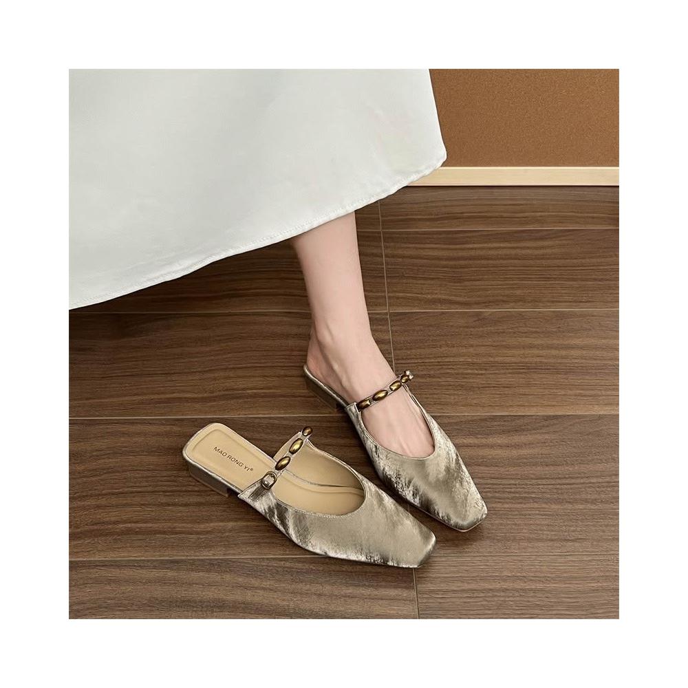 新品 含發票 羊皮~版新款夏季無後跟方頭穆勒鞋包頭涼拖鞋女夏外穿粗跟半拖鞋