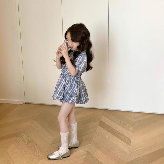 新品 含發票 2026夏季女童美式學院風格子襯衫上衣+花苞半身裙褲裙套裝洋氣