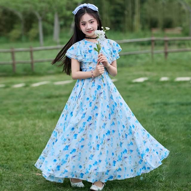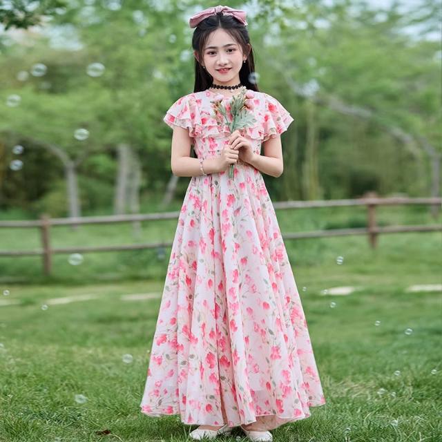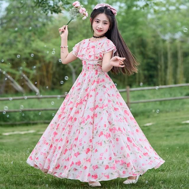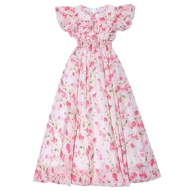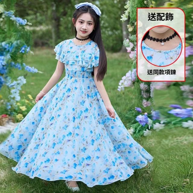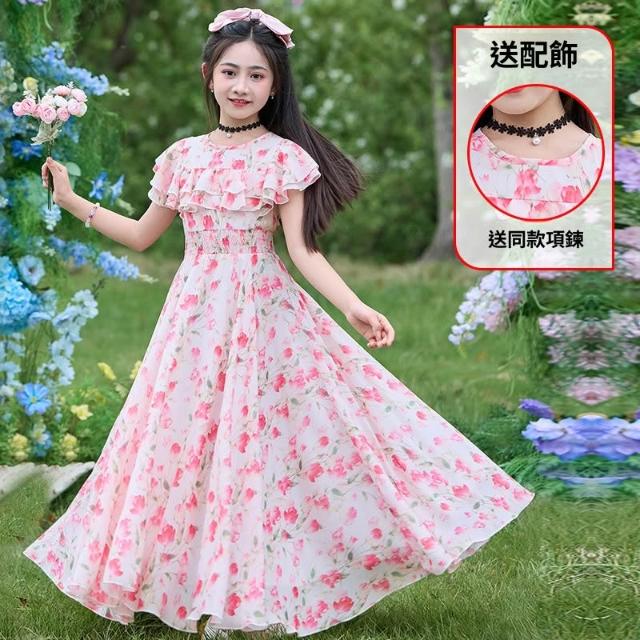 新品 含發票 女童連衣裙夏裝2026新款洋氣小女孩沙灘裙中大兒童雪紡碎花長裙子