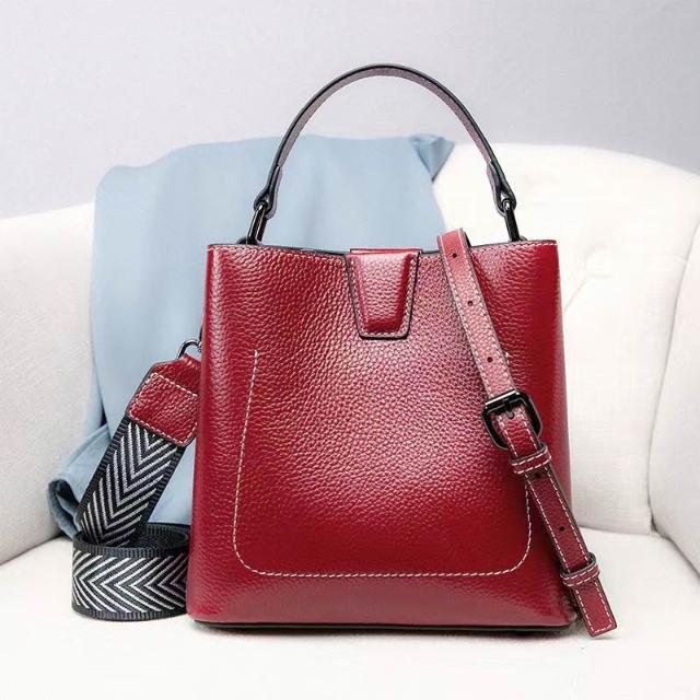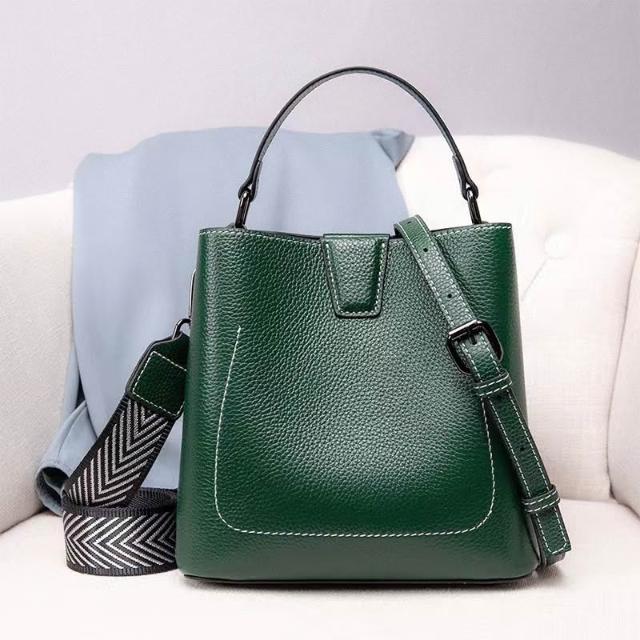 真皮女包水桶包手提單肩斜挎包2024新款時尚百搭高顏值質感小包包