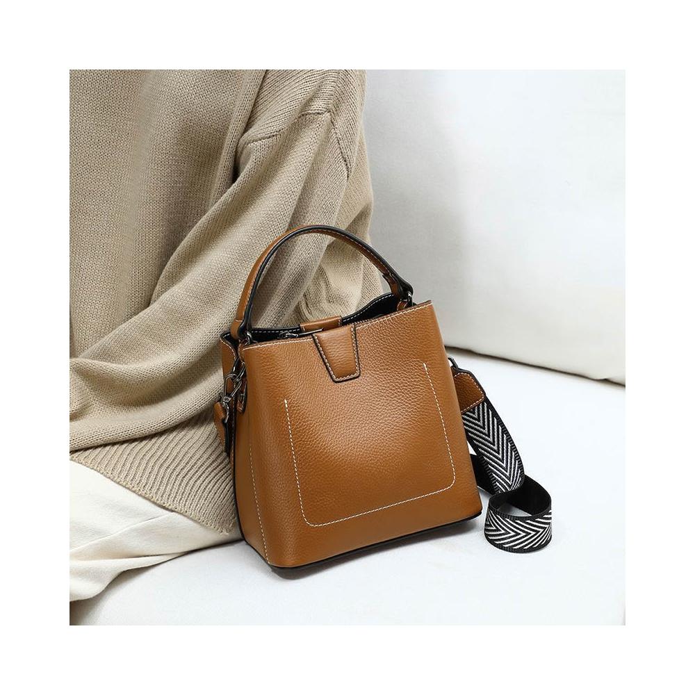 真皮女包水桶包手提單肩斜挎包2024新款時尚百搭高顏值質感小包包