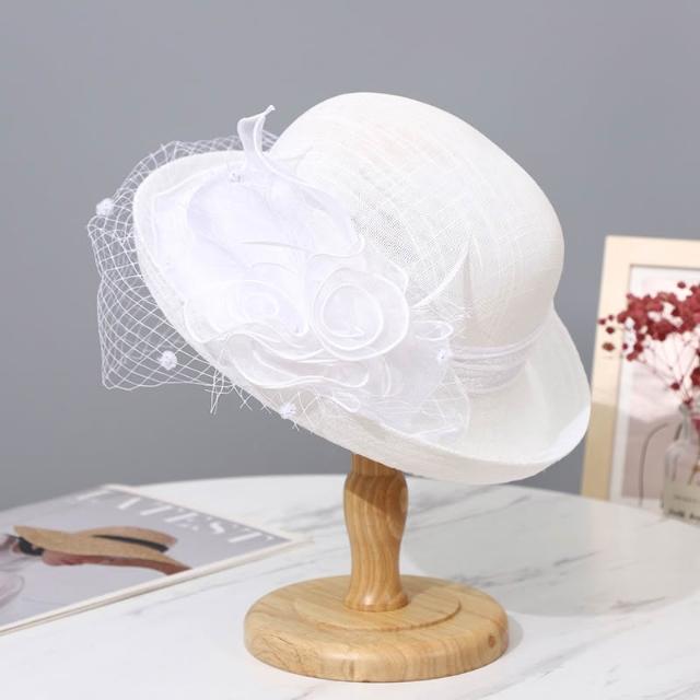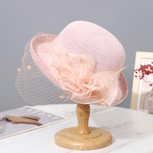 夏季女紗帽女士太陽帽貴族帽子女網紗卷邊花朵禮帽女英倫名媛涼帽
