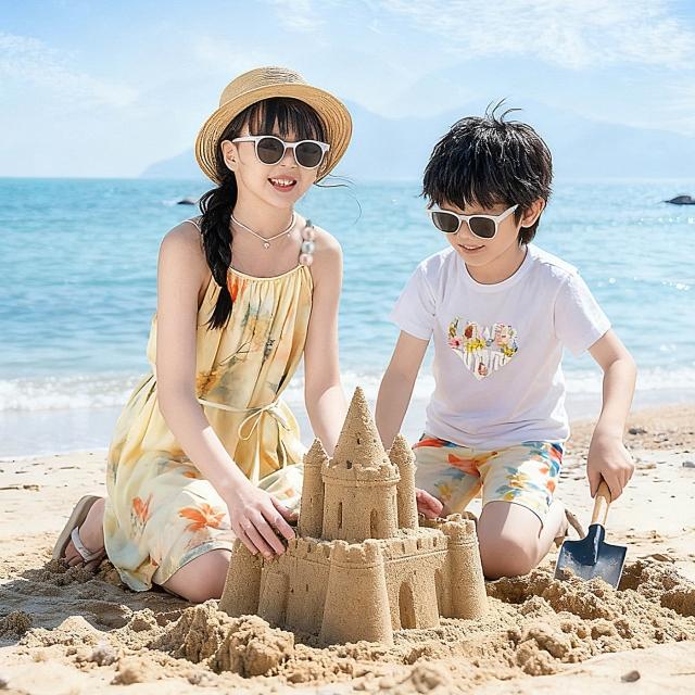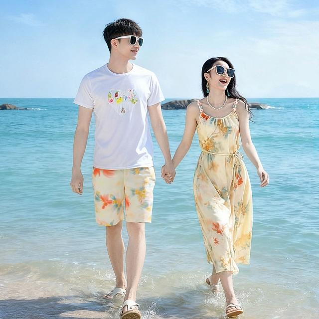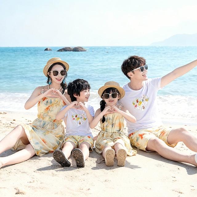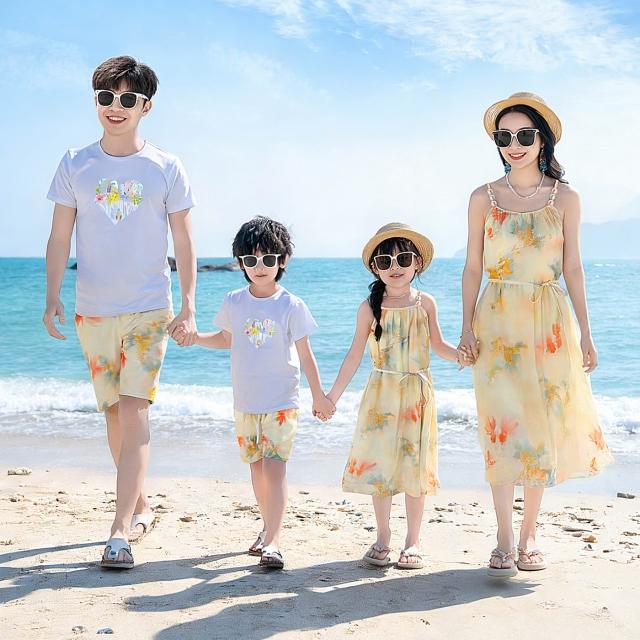 夏季沙灘裙情侶裝海邊度假吊帶裙度假風新款一家四口親子裝