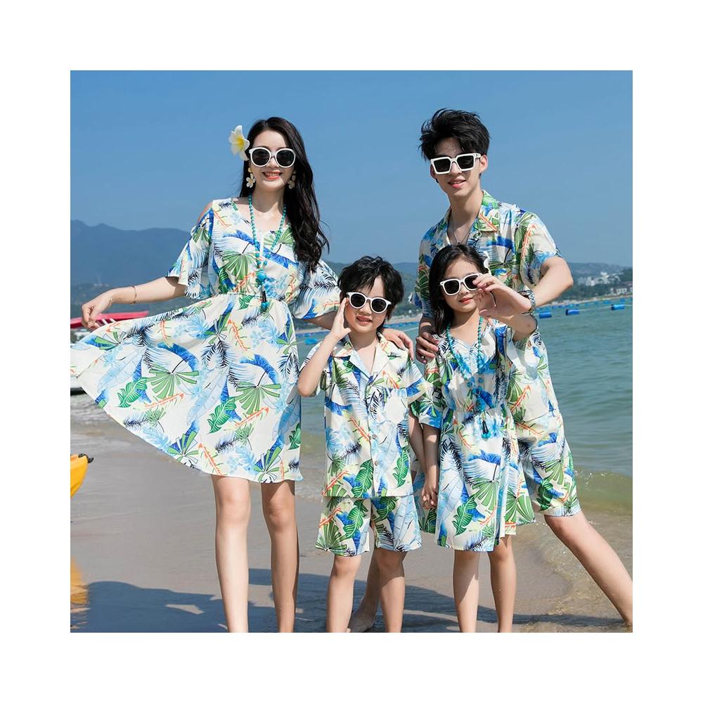 露營親子裝父子襯衫島服套裝海邊度假洋氣母子母女沙灘裙三亞旅遊