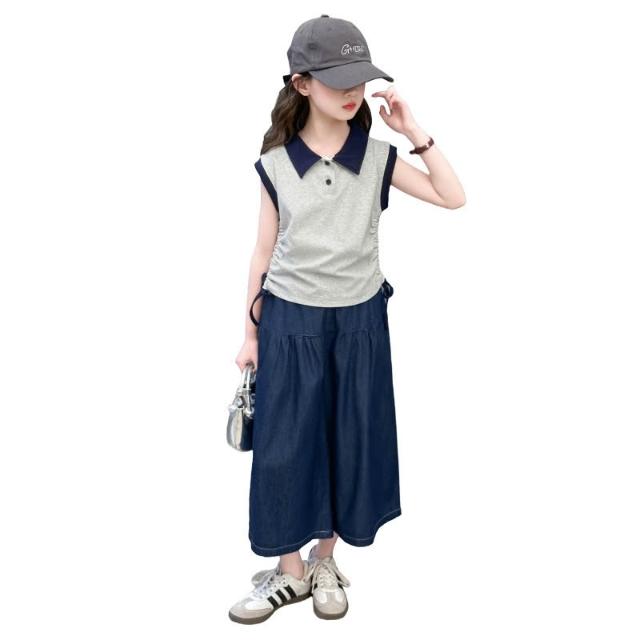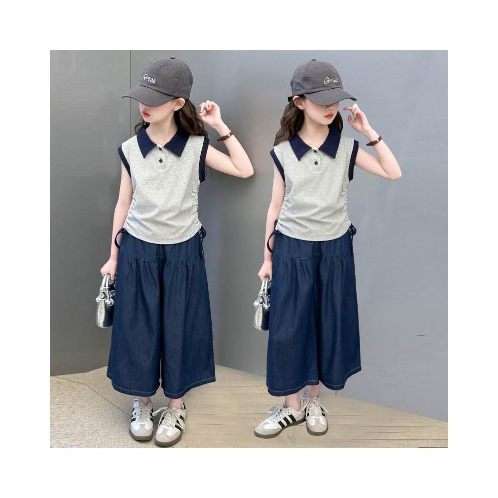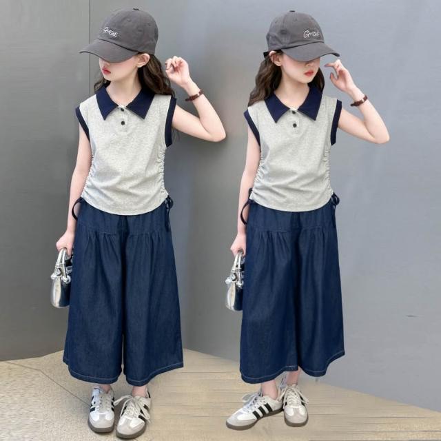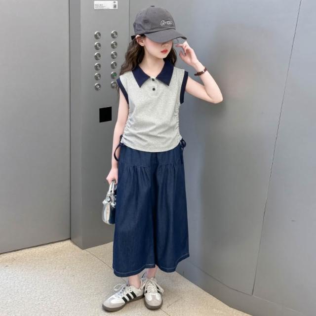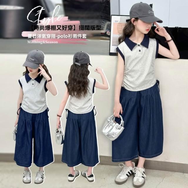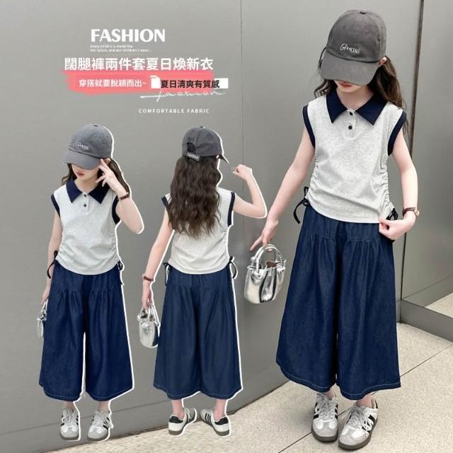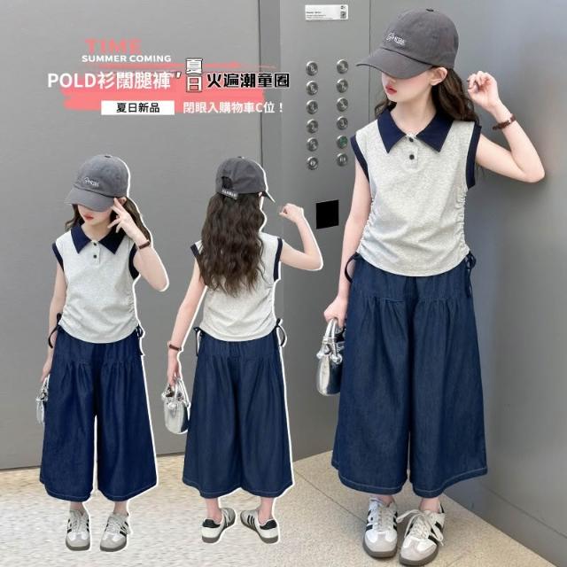 新品 含發票 女童夏裝套裝2026新款兒童洋氣薄款無袖Polo衫t夏季闊腿褲兩件套