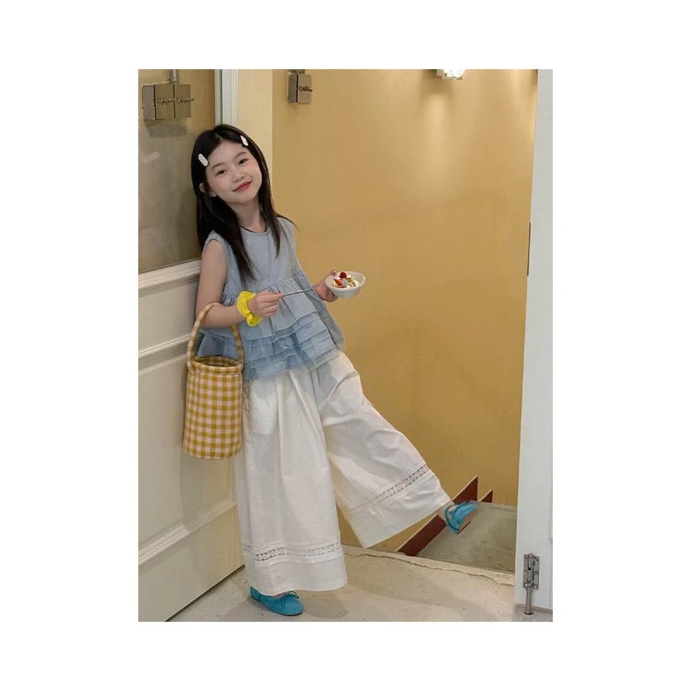 新品 含發票 女童闊腿褲套裝2025夏裝新款洋氣女寶寶娃娃衫上衣兒童寬松闊腿褲